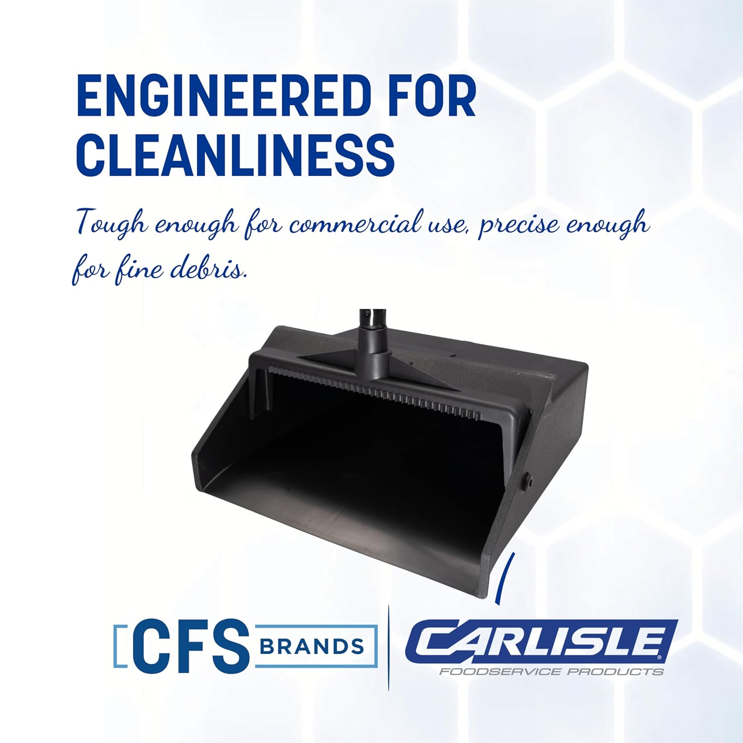- 12 inch wide dust pan with serrated edge for efficient sweeping and trapping of debris