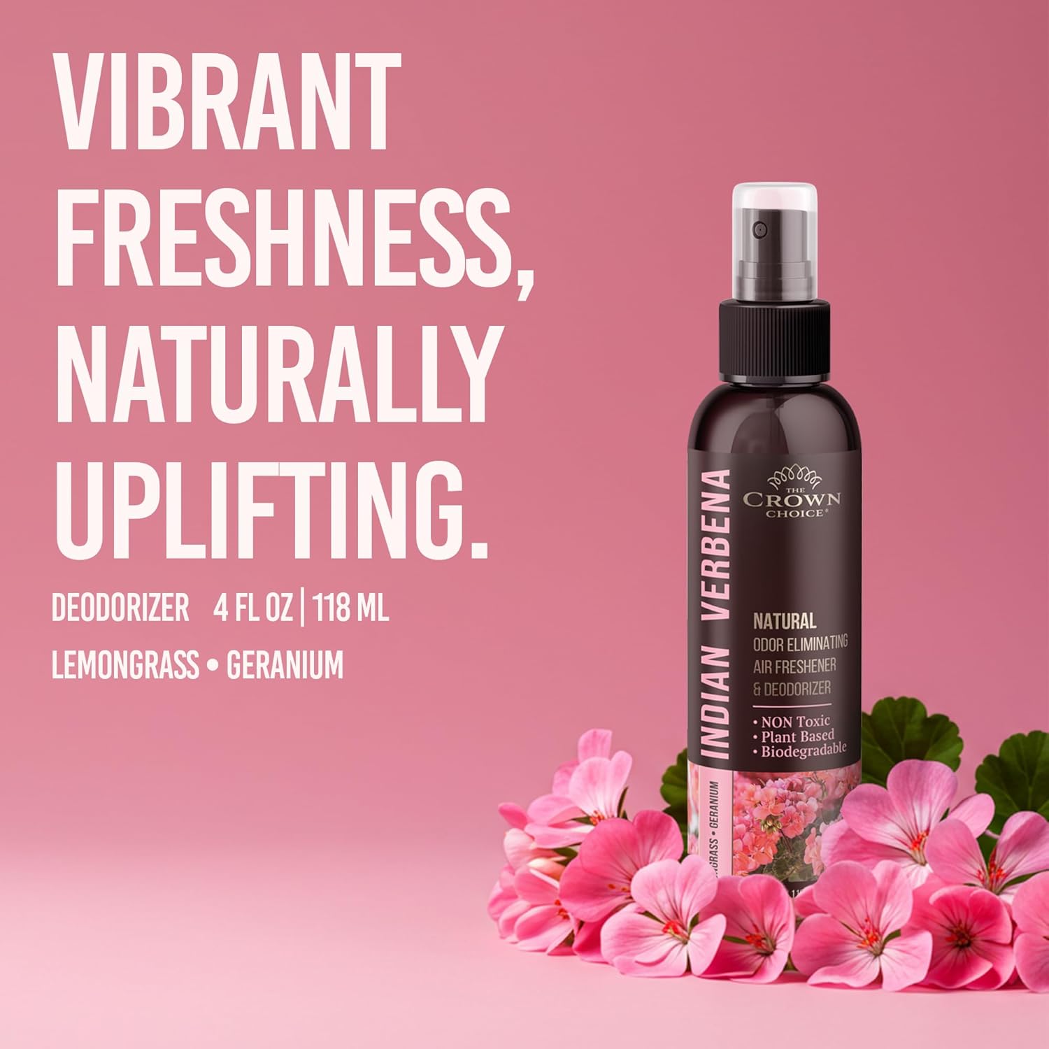 - GERANIUM & LEMONGRASS ESSENTIAL OIL FRESHNESS This natural air freshener spray is infused with essential oils for a refreshing, clean, and long-lasting home fragrance. Perfect as a fabric refresher spray, musty basement odor eliminator, neutralize urine smell, and pet deodorizer.
