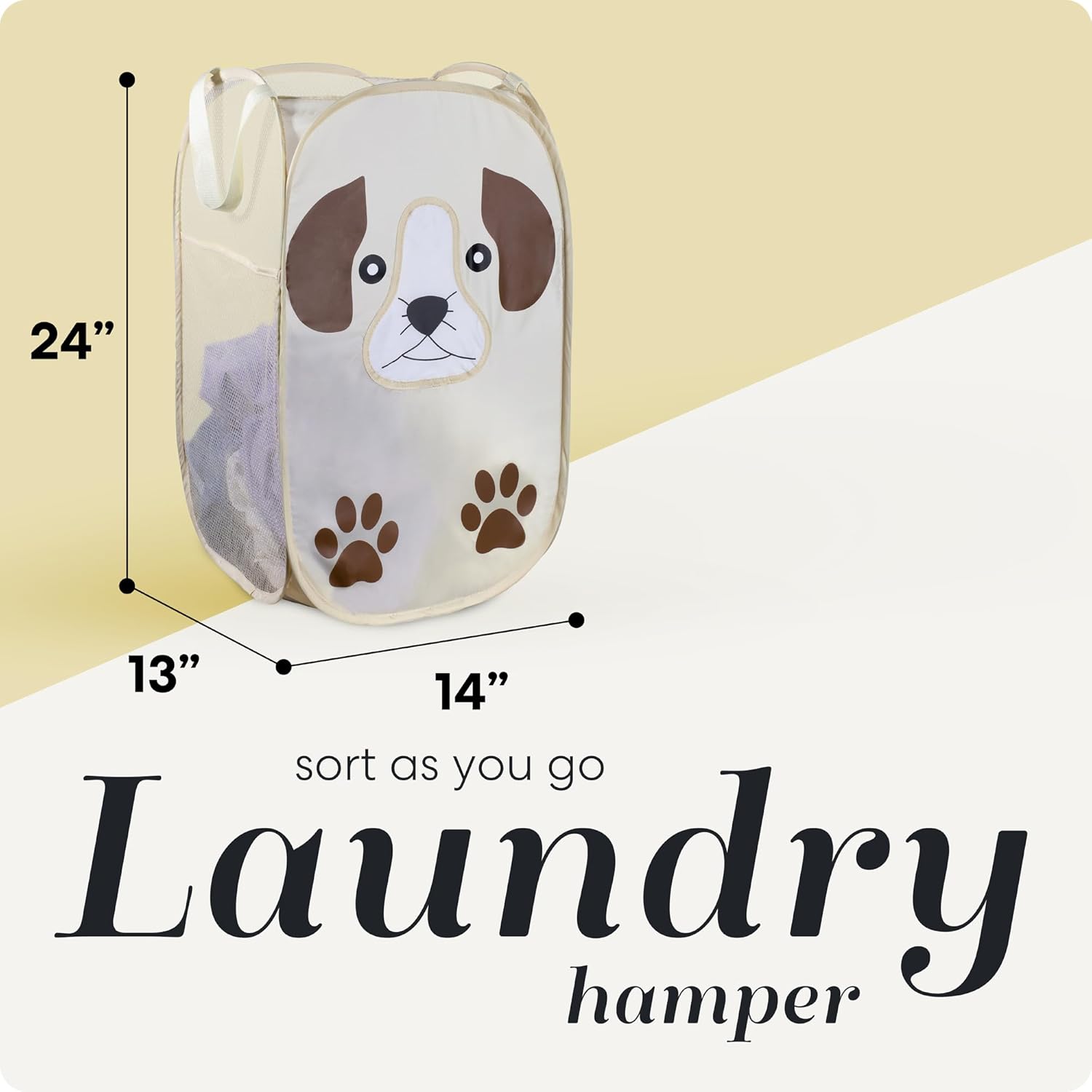 Handy Laundry Collapsible Mesh Pop-Up Hamper with Wide Opening and Side Pocket - Breathable, Sturdy, Foldable, Space-Saving Design (Puppy)