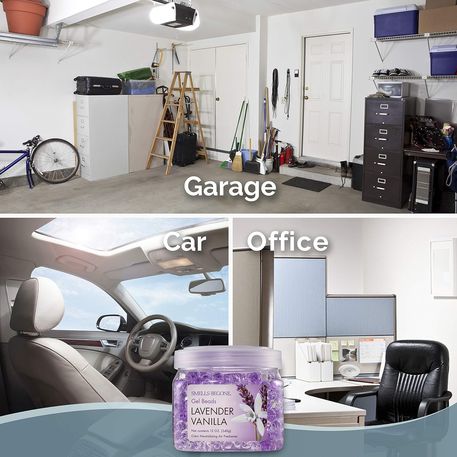 SMELLS BEGONE Odor Eliminator Gel Beads - 12 oz, Pack of 6 - Eliminates Odor in Bathrooms, Cars, Boats, RVs & Pet Areas - Air Freshener - Made with Essential Oils - Lavender Vanilla Scent