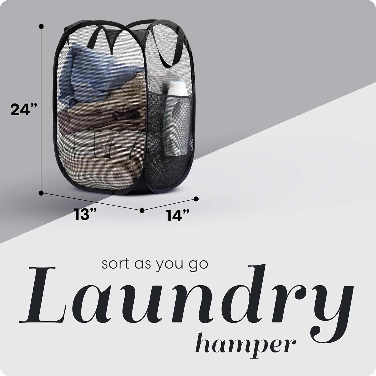 - BUILT-IN SIDE POCKET: The hampers are designed with convenience in mind, the additional side pocket is perfect for isolating smaller items or for handy labeling, making sorting and organization a breeze