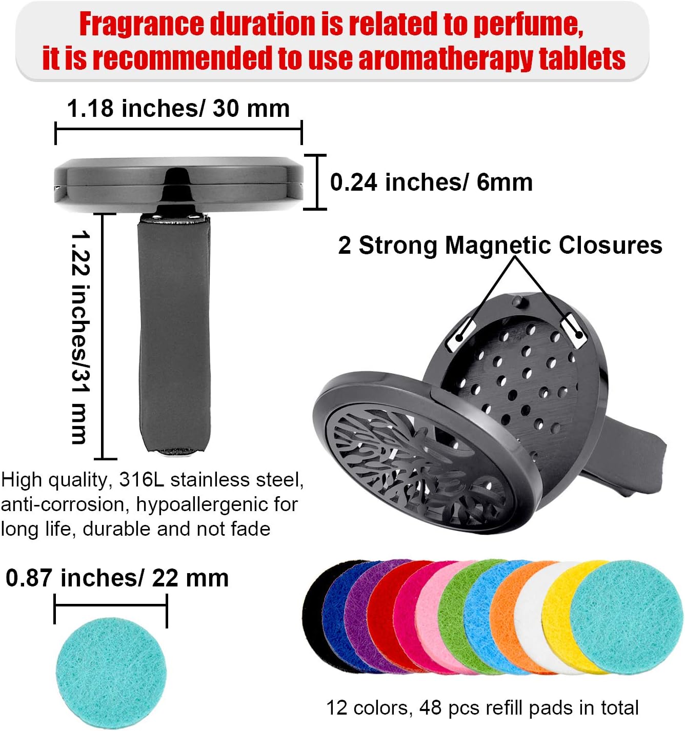 - Easy to use: add the essential oils on the replaceable felt pad and clip it to the car vent, turn on the ventilation of your car for a boost of fragrances