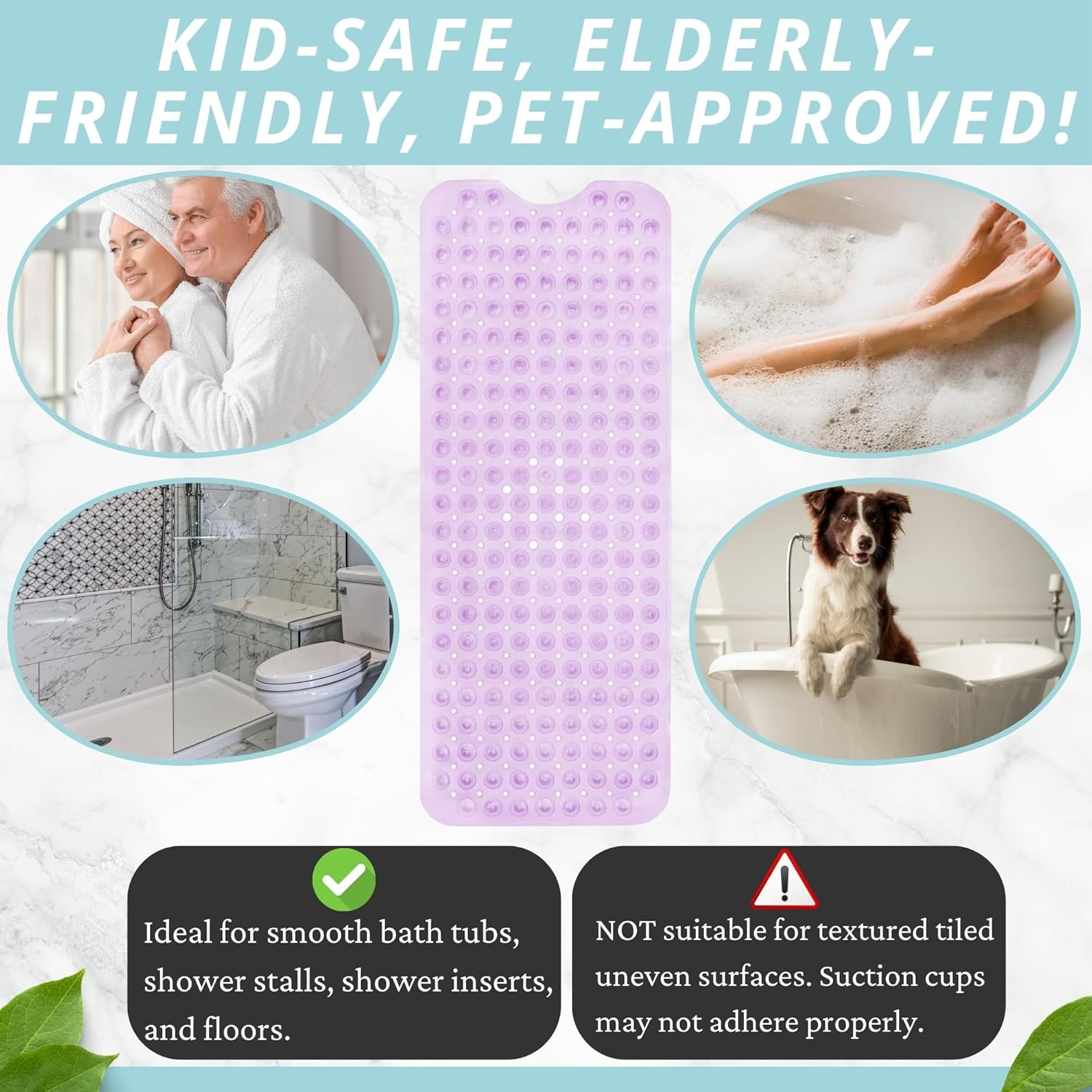 - Great For The Elderly, The Babies & Young Children: Nonslip & generously sized, the Enkosi bath mat ensures the safe bathing & showering of your baby, toddler, as well as your elderly parents or grandparents.