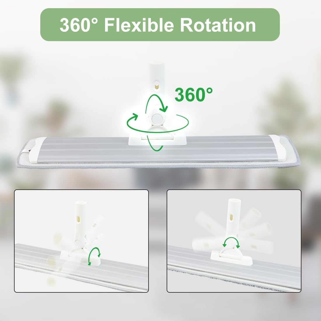 - [Efficient Cleaning Design] 18 inch aluminum alloy wide mop head paired with 360 degree ultra-fine fiber cloth easily matches 17-18 inch replacement pad, the handle length of themop is adjustable and can be extended by 33.27-57.7 inches, suitable for people of different heights for effortless cleaning, only 0.5 cm ultra-thin frame deep into the bottom of furniture.