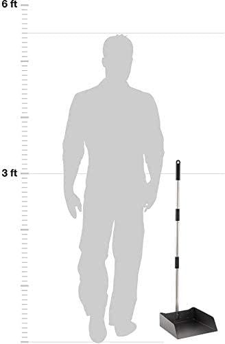 - LONG HANDLED DUST PAN: LONG HANDLED DUST PAN: Measuring out at 39 inches, the dust pan long handle eliminates tedious bending allowing you to work comfortably without back pain. Definitely a must have for someone who has issues bending over. Be it bad knees or a bad back, this keeps you sturdy while cleaning up the floor.
