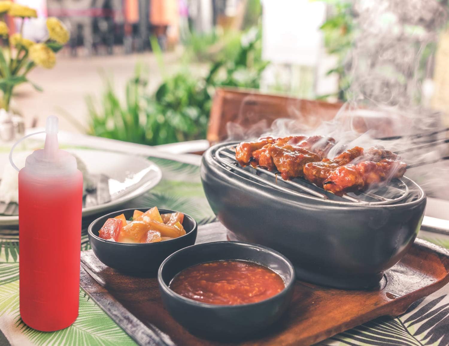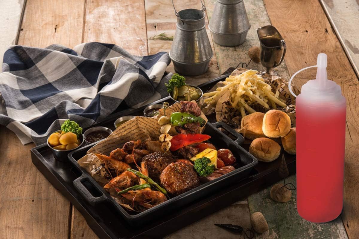 - No-leak Lids: Bbq sauce squirt bottles come with a leak-proof, removable lid that is attached to the bottle neck. You can cap it directy after using it.
