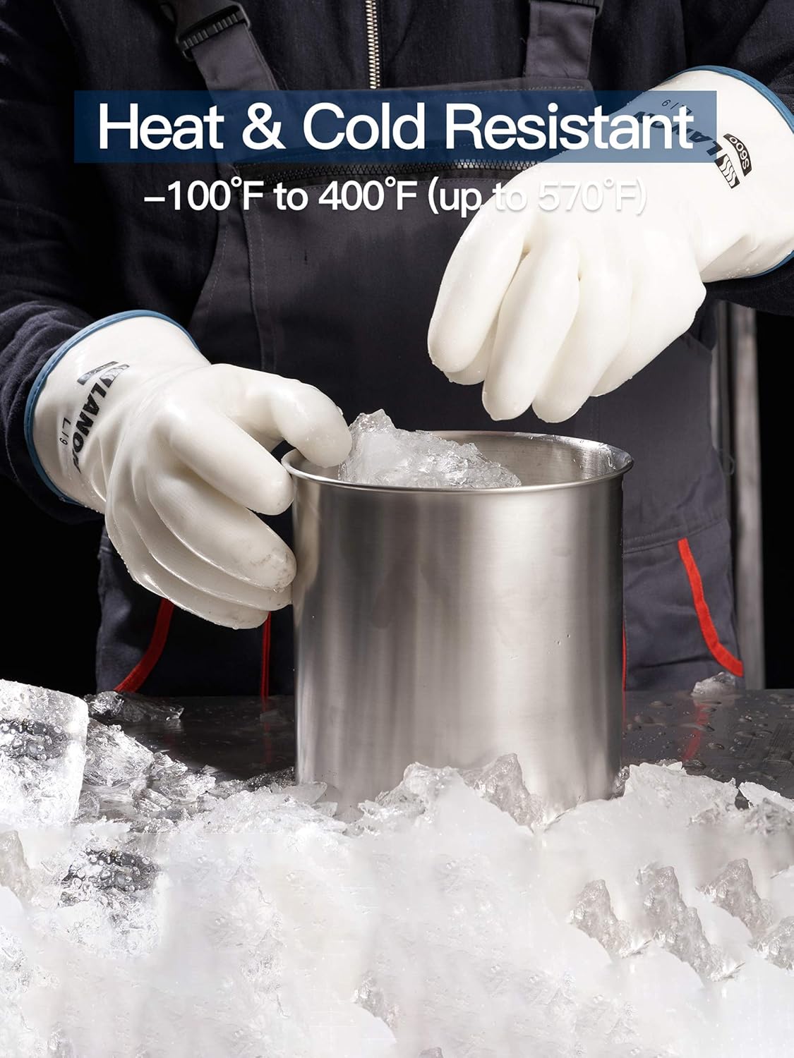 LANON Protection Wahoo Liquid Silicone Smoker Oven Gloves, Food-Contact Grade, Heat Resistant Gloves for Cooking, Grilling, Baking, White, L/9