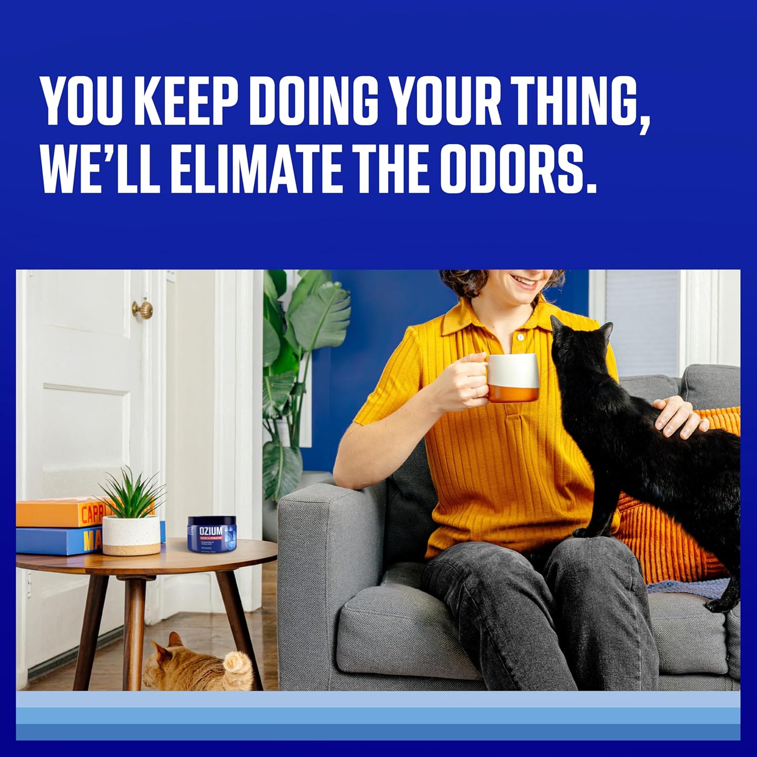 - GREAT FOR ELIMINATING ODOR IN LARGE SPACES: OZIUM 8oz odor eliminating gel eliminates unpleasant odors in larger spaces, like kitchens, offices, garages and more.