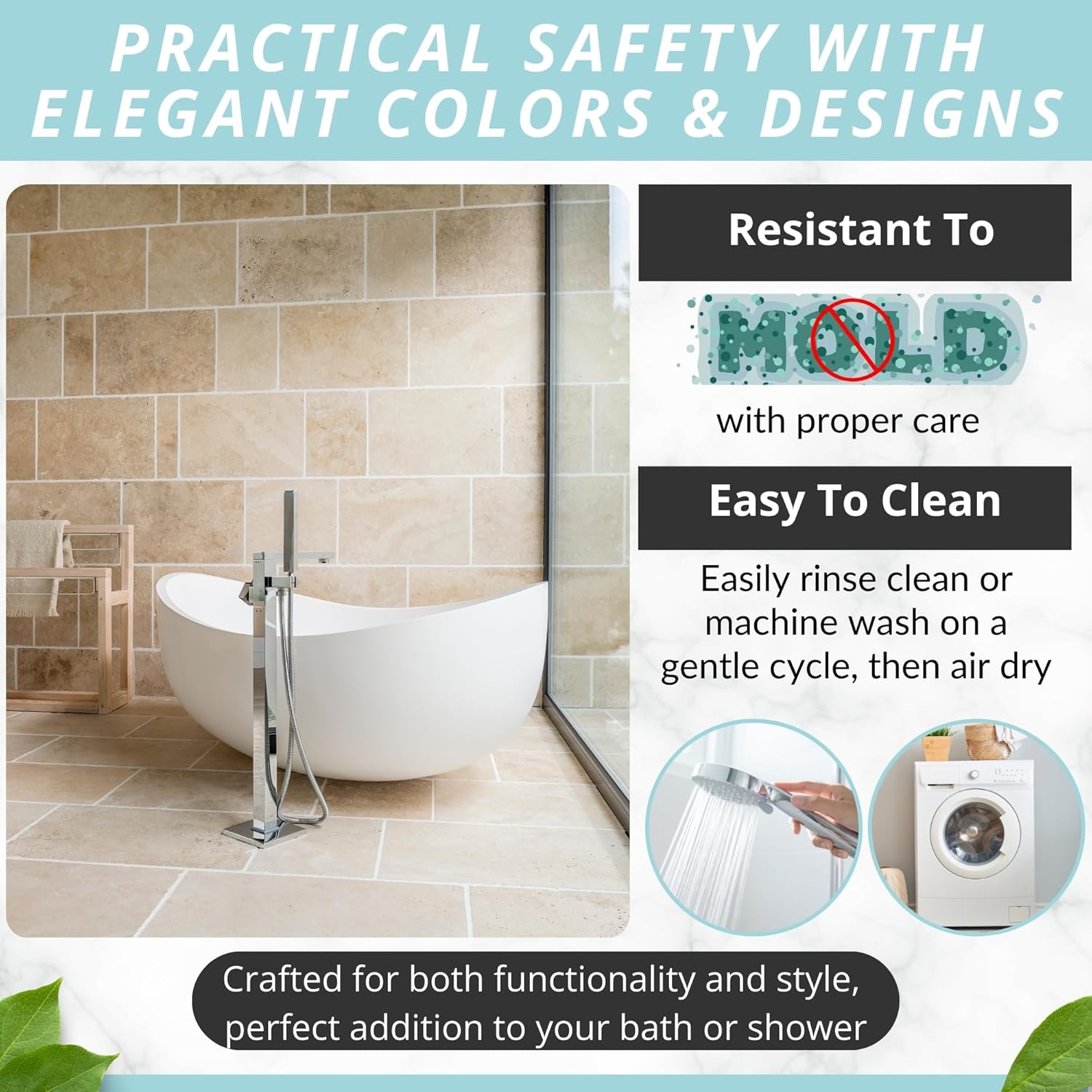 - Modern, Sturdy & Made To Last: Complement your stylish bath rugs décor with an eye-catching bath mat in many color variations. Place it in the washing machine, to keep it fresh, clean and hygienic for a long time!