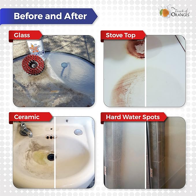 - REMOVES CALCIUM, MINERAL, & RUST STAINS – Hard water can contain high concentrations of minerals like limestone, calcium, and magnesium. These minerals can cause buildup to accumulate around your bathroom hardware and on other surfaces.