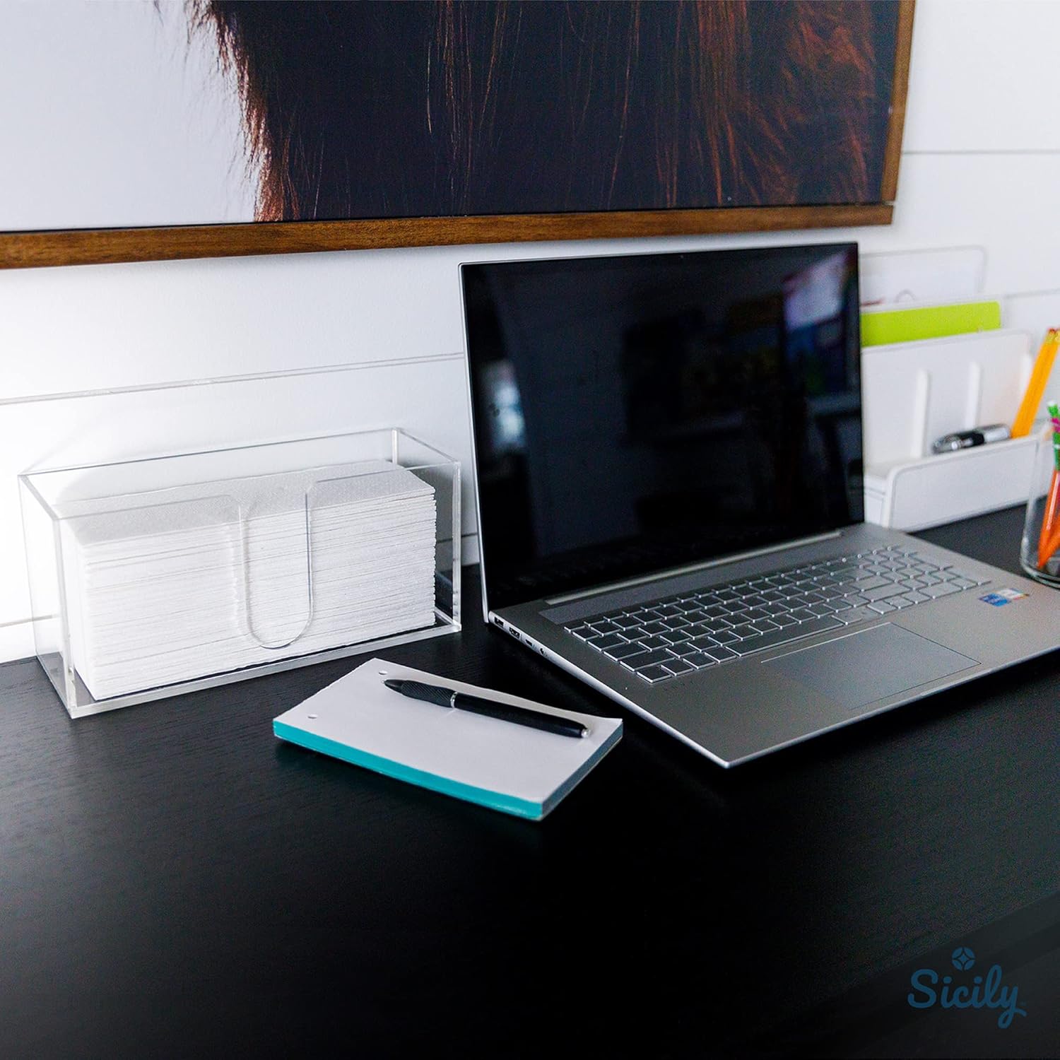 - ENCOURAGE GOOD HYGIENE among house guests or employees at your restaurant with the Sicily Disposable Hand Towel Holder. This Acrylic Guest Towel Holder tray for Bathroom and Kitchen presents fresh paper towels conveniently and fashionably. ORGANIZE with a countertop paper towel holder storage to keep areas tidy.