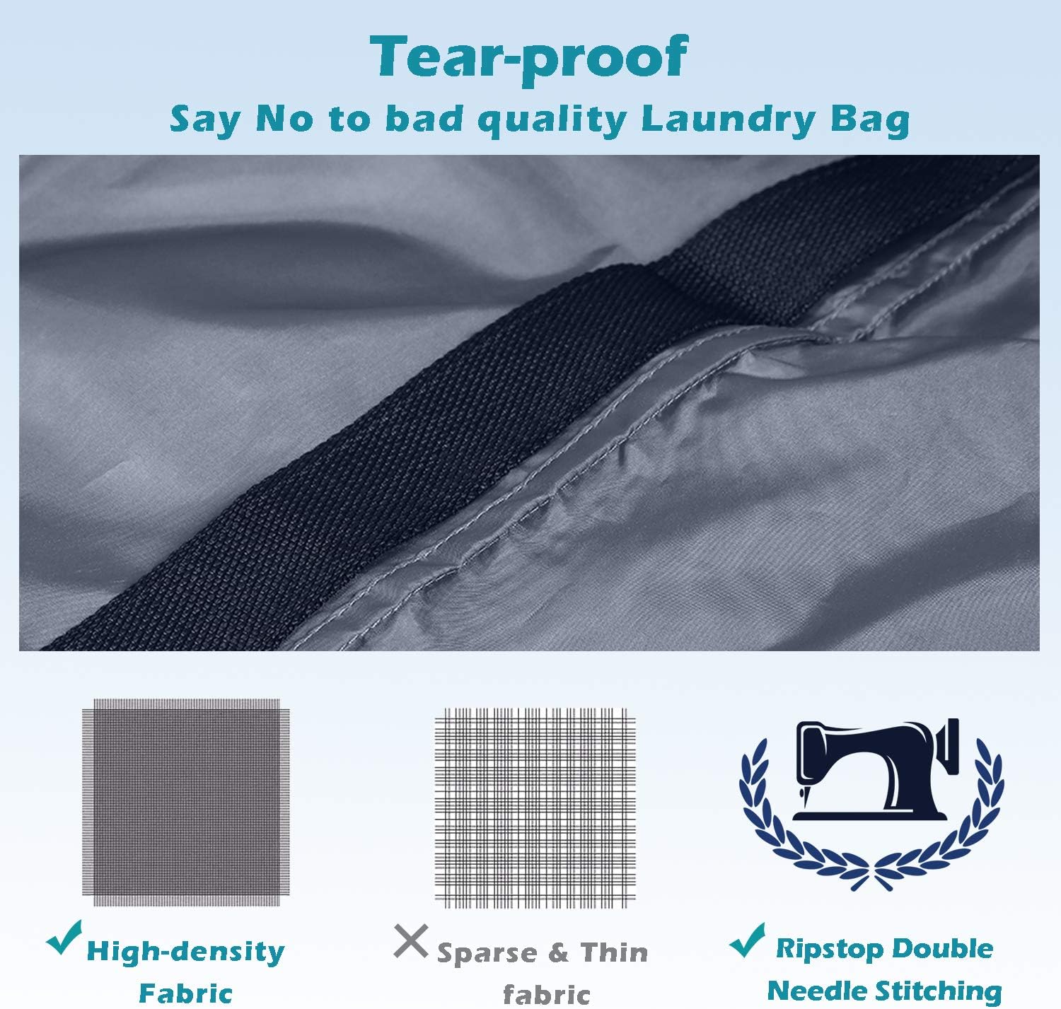 - Stand the Test of Time:Unlike most brands on the market, each of our extra large heavy duty laundry bags is made of tear-resistant and high-density polyester nylon material, with extra-tough double-seam construction and multiple stitching to ensure the travel laundry bags will not rip easily and hold up well in the washing machine.