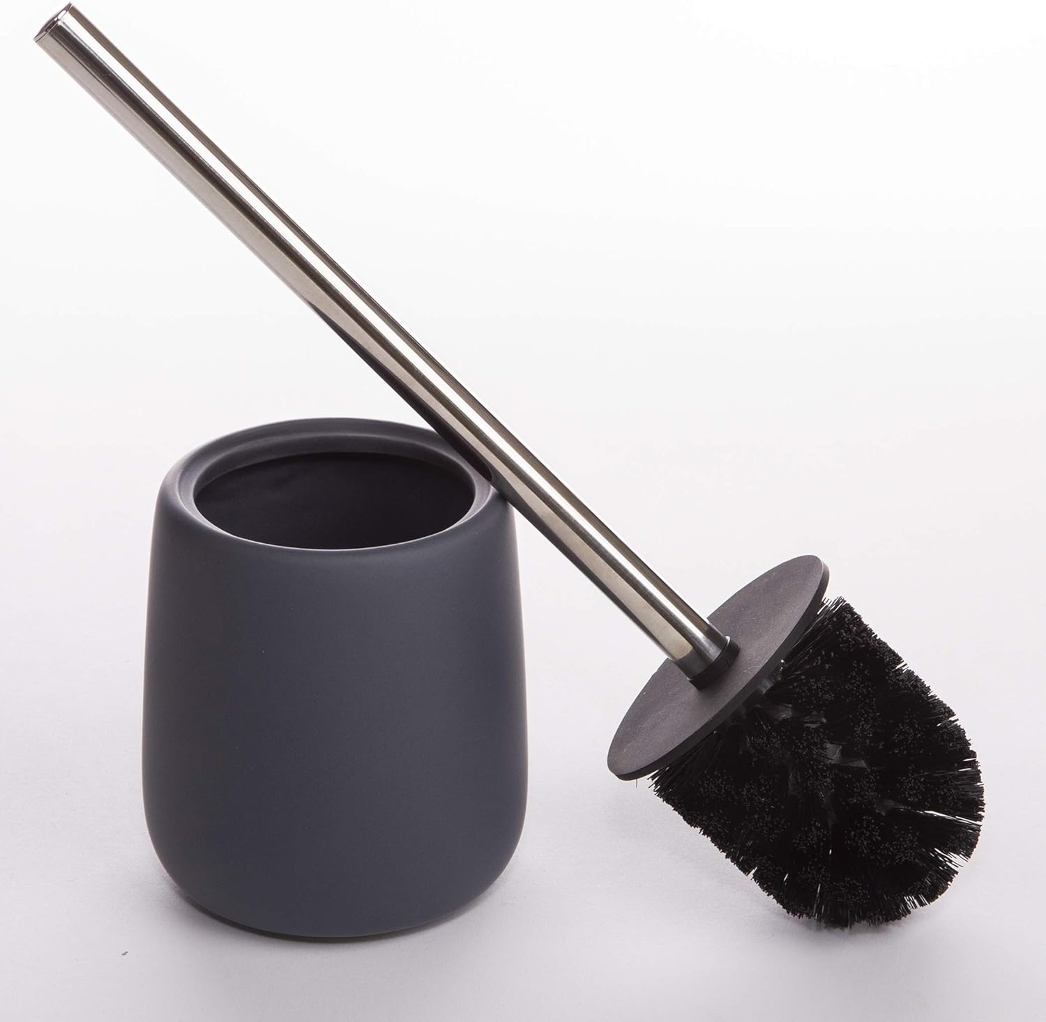 - STYLISH STORAGE: Toilet brush with individual holder provides simple and discreet storage that keeps floors clean and dry; Tucks neatly beside the toilet; Non-skid, non-slip base keeps the bowl brush secure; Stands up to daily use