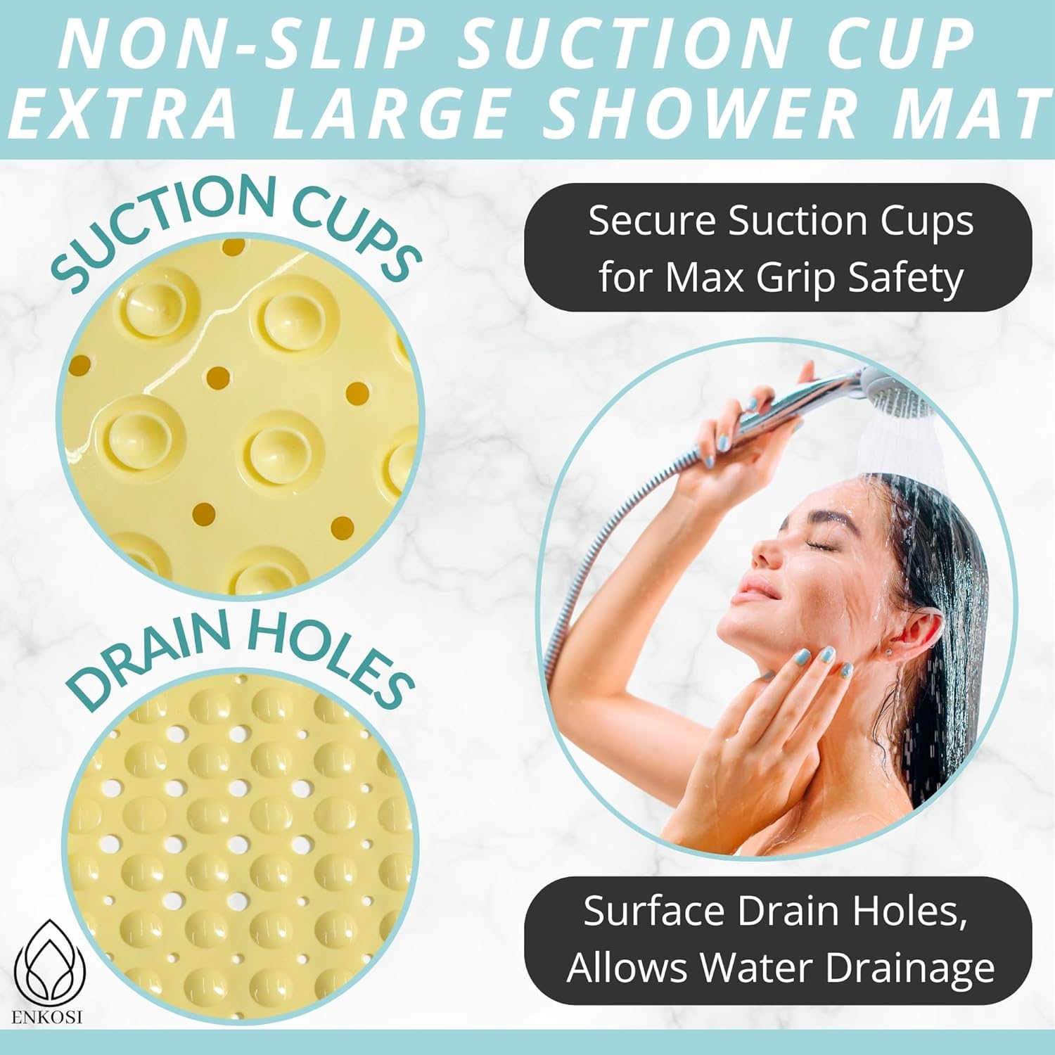 ENKOSI Bath Mat - Large Non Slip Bathtub & Shower Mat - Extra Long 40 x 16 Inch Bathroom Mats for Tub Nonslip Anti Slip Bathmats (Yellow), 1 Pack