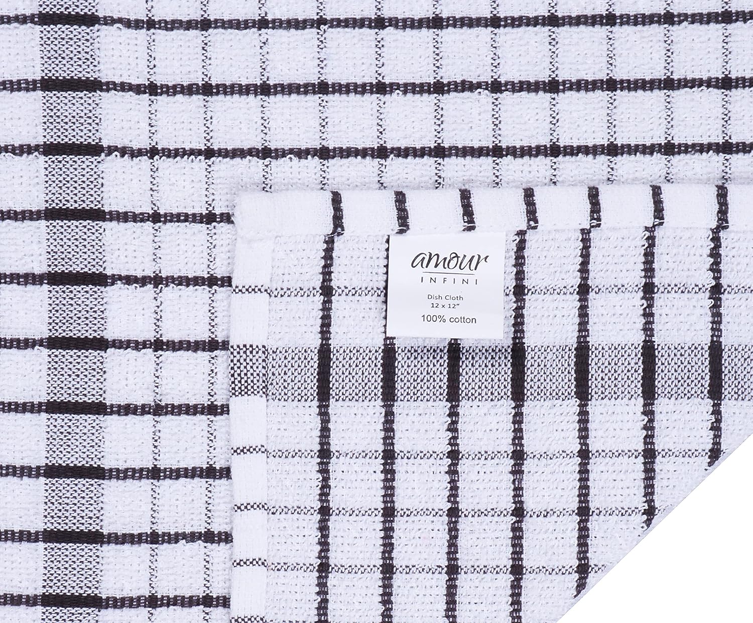 - SET OF 8 DISHCLOTHS: This set includes 8 premium-quality, 12" x 12" dish cloths, crafted from , high-density terry cotton. Ideal for everyday kitchen use, each cloth provides an excellent balance of softness and absorbency, ensuring a luxurious feel and optimal cleaning performance.