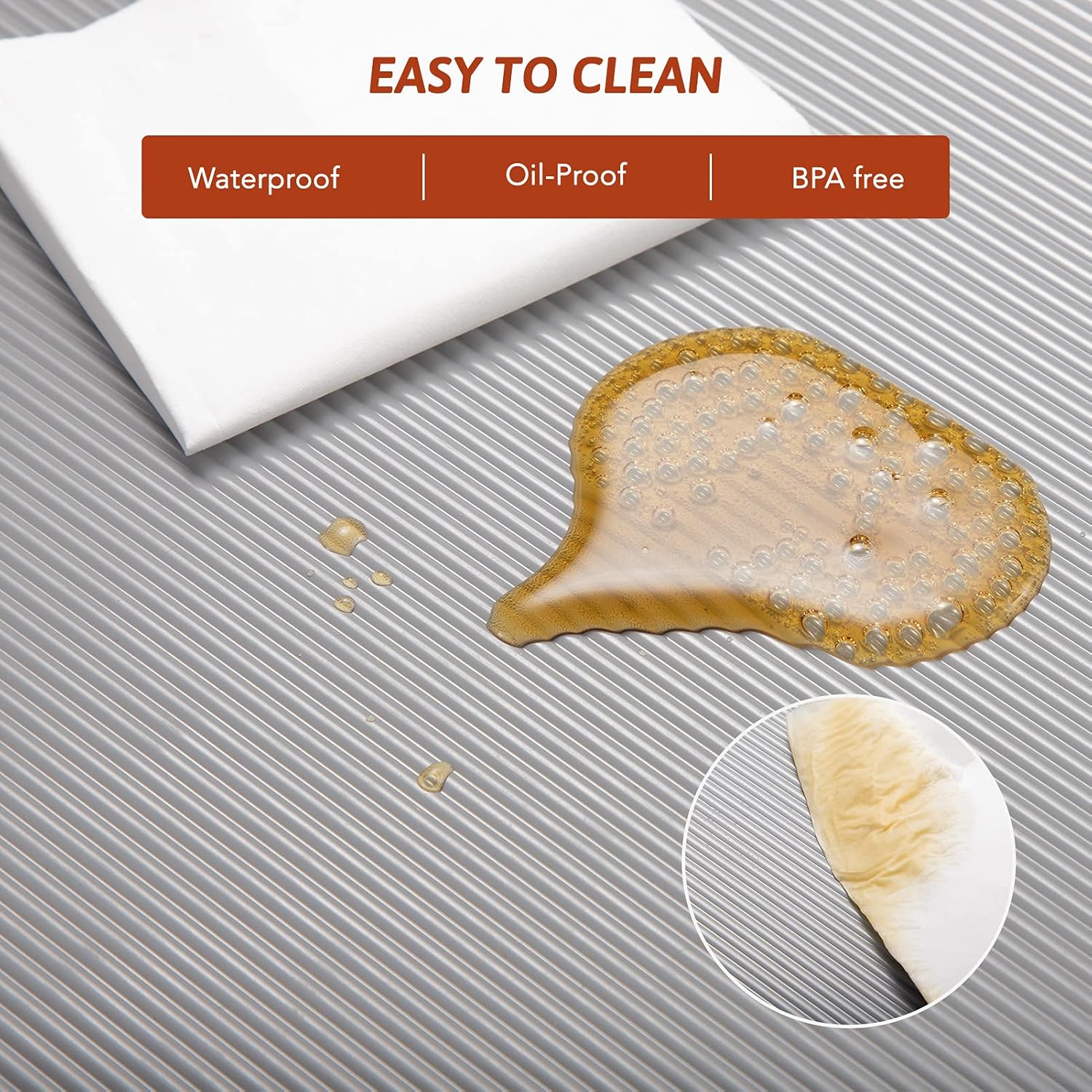 - Waterproof and Easy to Clean- These storage shelf liners are waterproof and dust-proof which keeps belongings in your kitchen cabinet, fridge and drawer organized and protected from grease and spills. The non-adhesive shelf liners are easily removable and can be cleaned with mild soap and water.