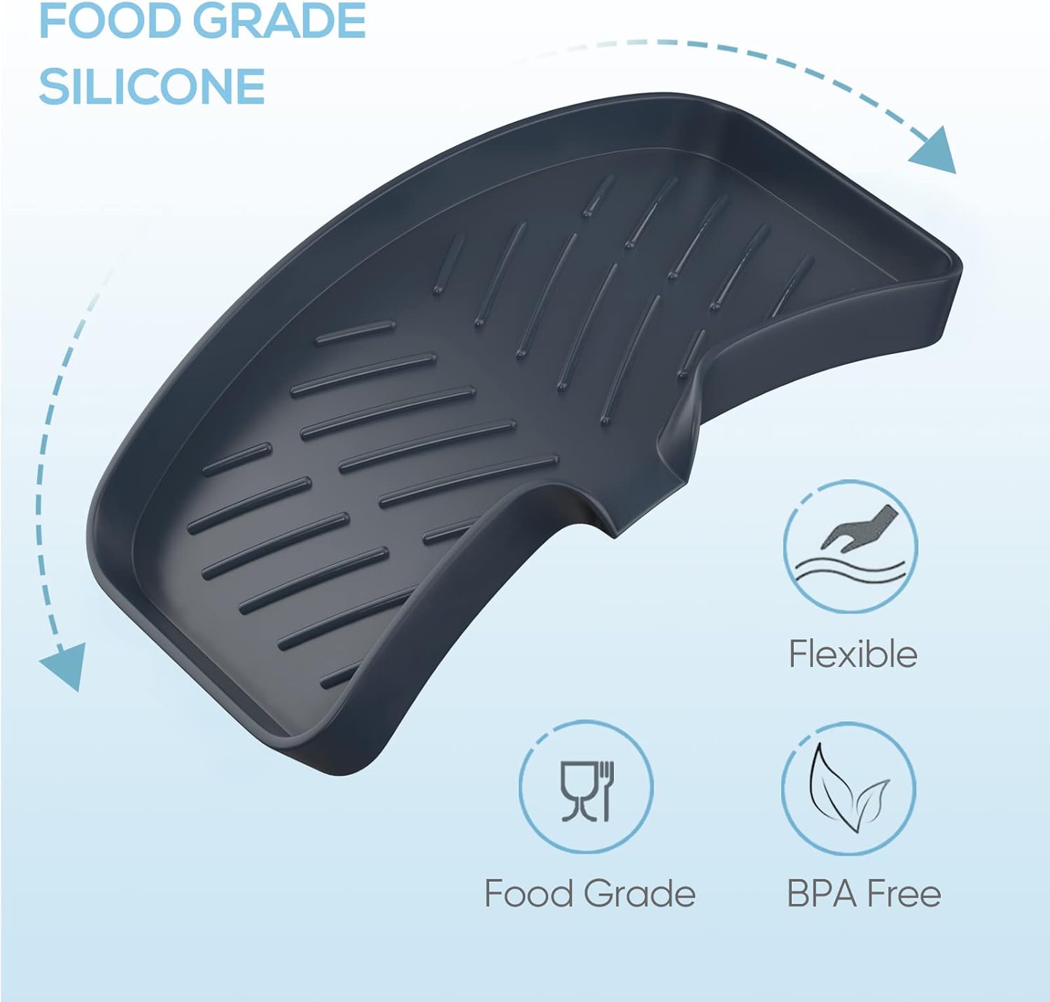 - 【Superior Quality Food-Grade Silicone】 Our kitchen sink tray is made of superior quality food grade silicone which is BPA free and flexible, it won't crack, peel or become brittle.This silicone sponge holder is heat resistant for use with hot tools and it is easy to clean, you can put it into the dishwasher. More importantly, this silicone dish soap holder prevents slipping by offering a grip.