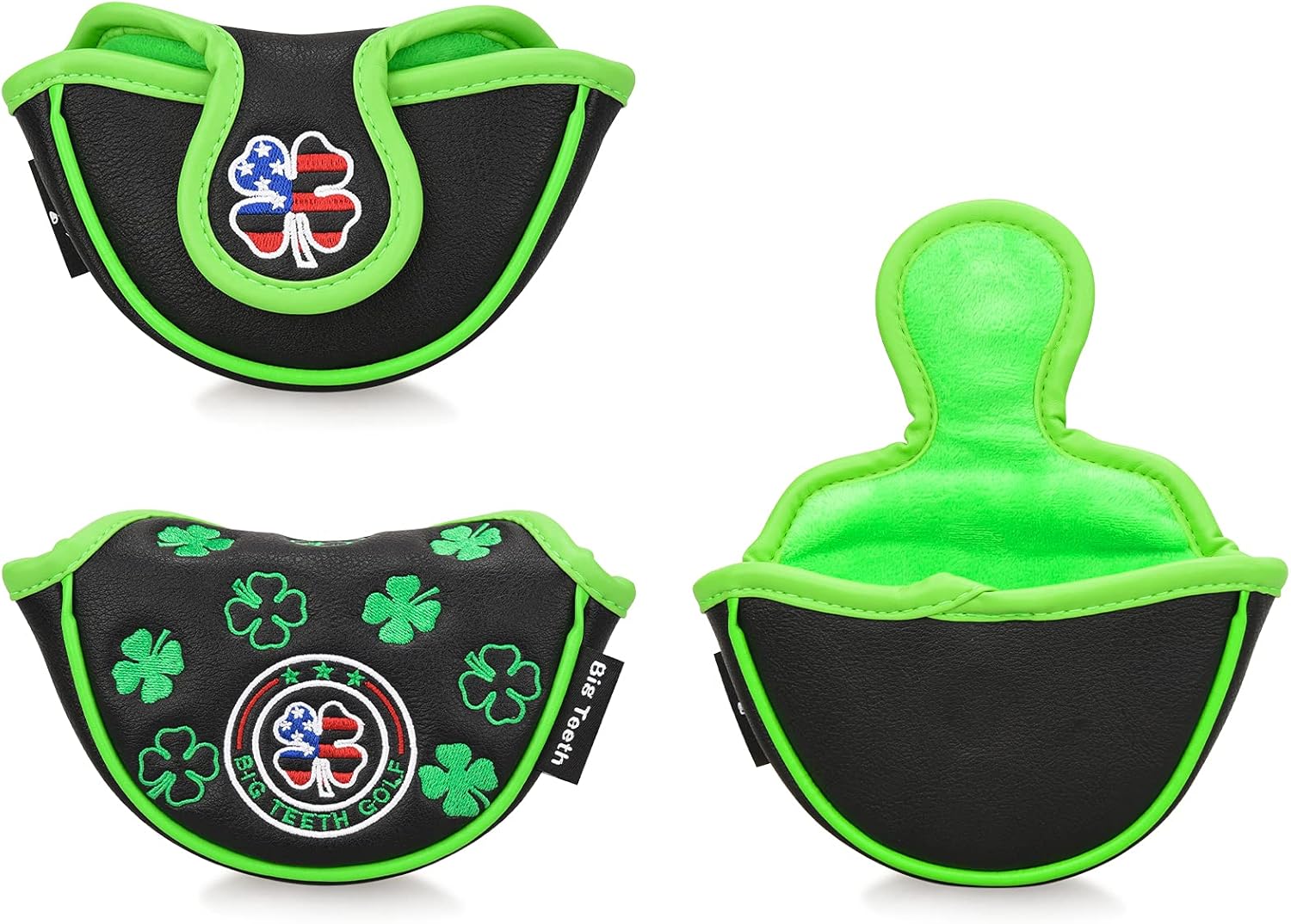 BIG TEETH Putter Cover Mallet Putter Cover Half Mallet Small Golf Headcover, Mini Club Head Protector Magnetic Closure Black Leather for Odyssey White Hot #5 Golf Rossie Tour Edge Chipper etc
