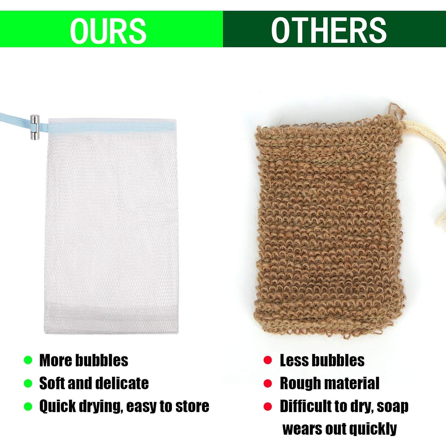 - Blister Immediately:In terms of a shampoo soap bar, if you do not want to wash your hair by directly applying the bar onto your head,you can put a bit of water on this soap bag,and you will see it foams in no time.