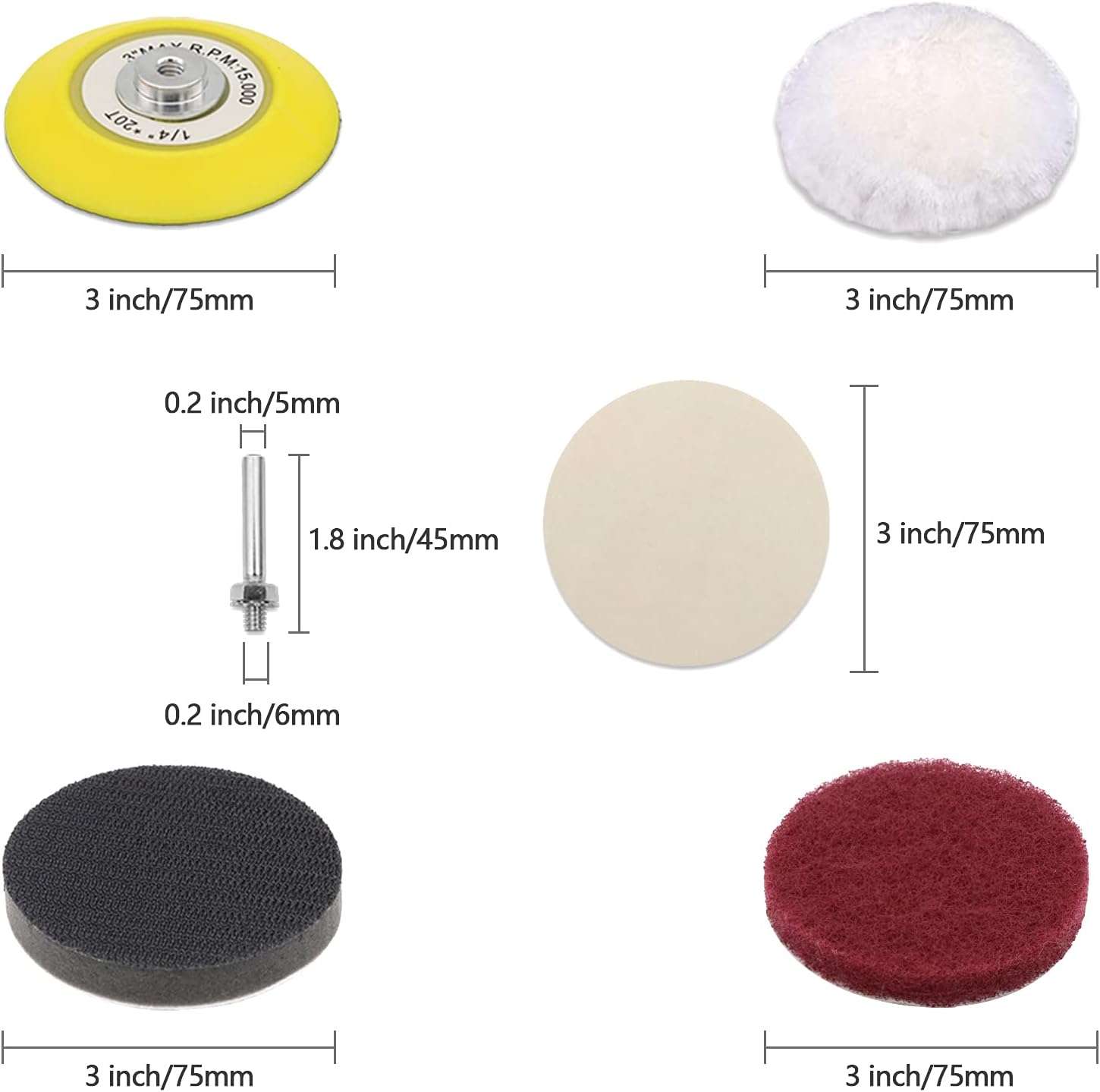 - 【PACKAGE INCLUDE】5 scouring pads + 10 waterproof sanding discs in grit 2000/5000/10000 + 1pc 1/4 inch shank backing pad + 1 soft interface pad + 2 woolen buffer pads, Totally 39 pcs(Drill not included).