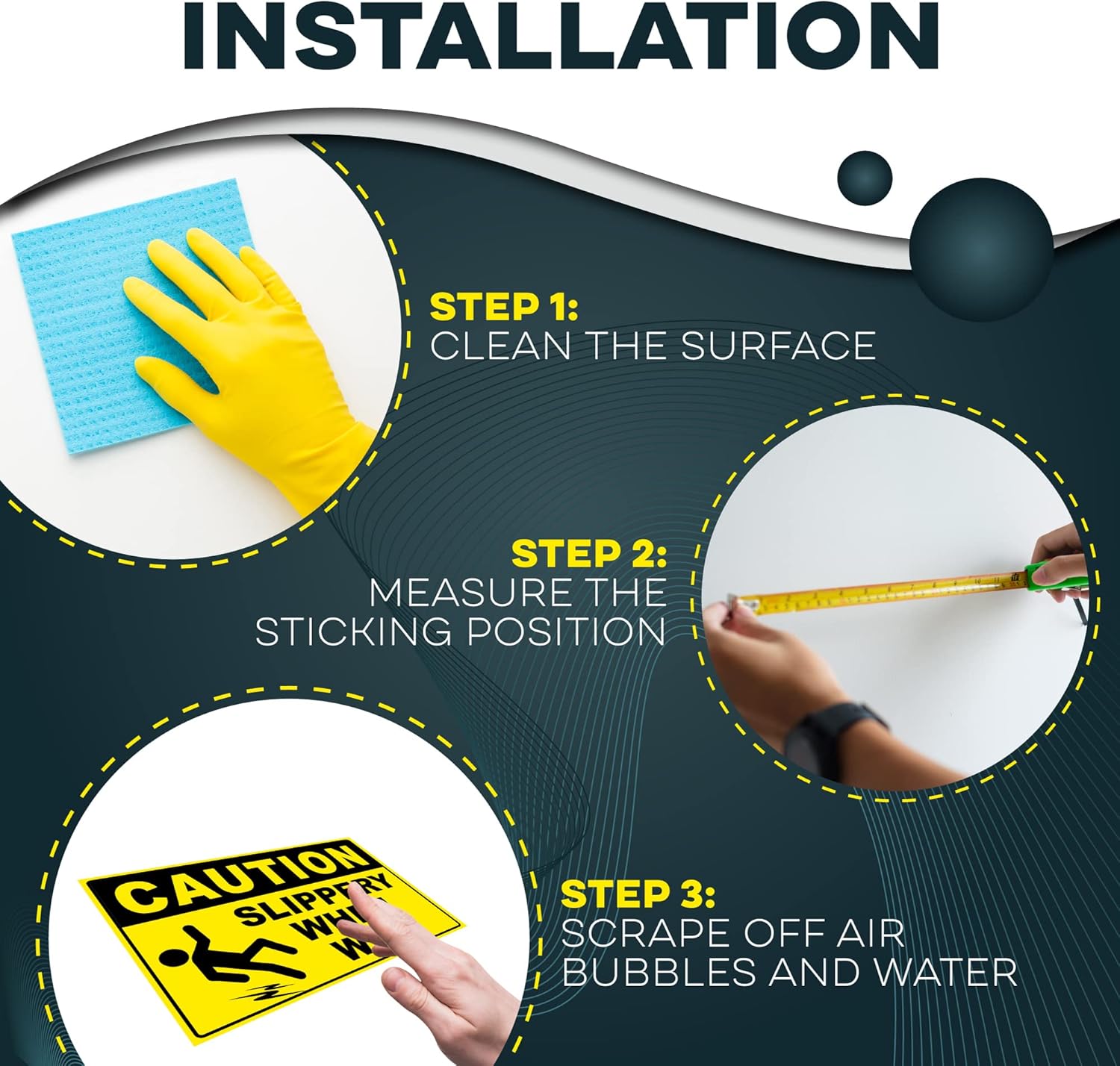 - Durable Vinyl Wet Sign Floor with Permanent Adhesive: Weather-resistant and fade-proof; designed for long-lasting indoor and outdoor use on smooth surfaces
