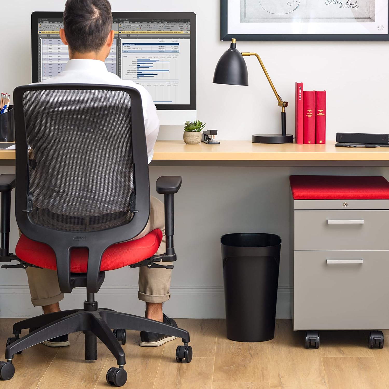 - MADE IN USA: Proudly made in the USA with global materials, this 6-gallon matte plastic small bathroom trash can features a sleek, modern design that blends seamlessly into any space. Perfect for use in the bathroom, bedroom, office, dorm, home, or as part of your room decor.