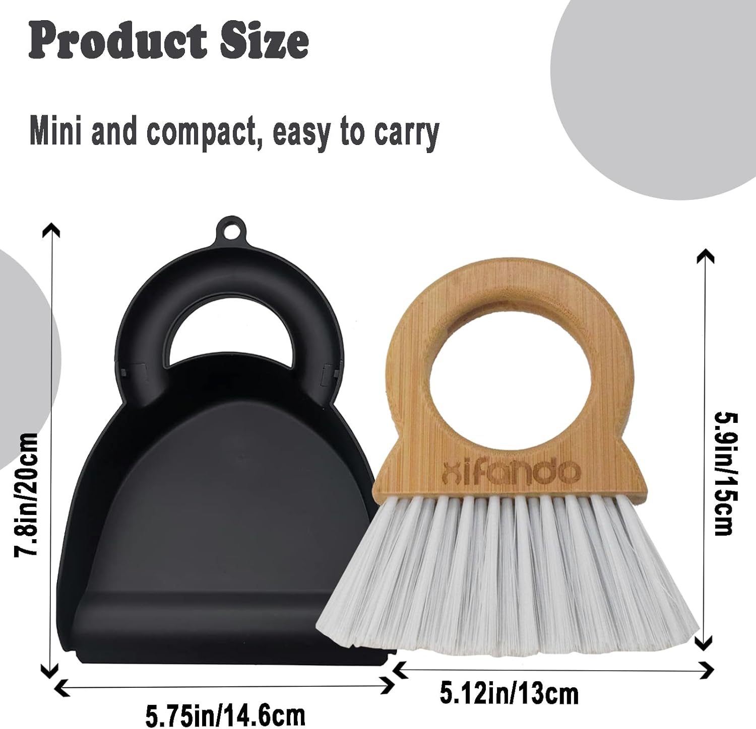 Mini Broom and Dustpan for Housekeeping-Bamboo Handle Small Broom and Dustpan Set Combination Mini Desktop Sweep, Keyboard Cleaning Brush with Shovel Brush,Round Bamboo Handle