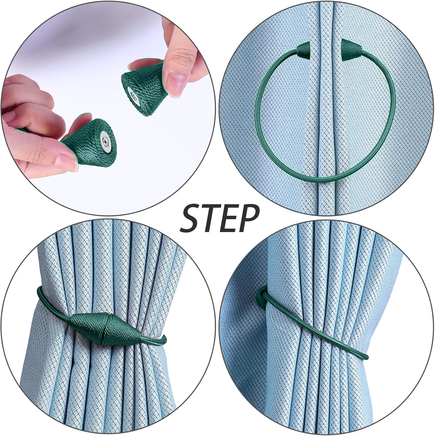 2 PCS Magnetic Curtain Tiebacks, European Style Convenient Drape Tie Backs Holdbacks for Thin or Thick Home & Office Window Draperies, No Tools Required (Teal)