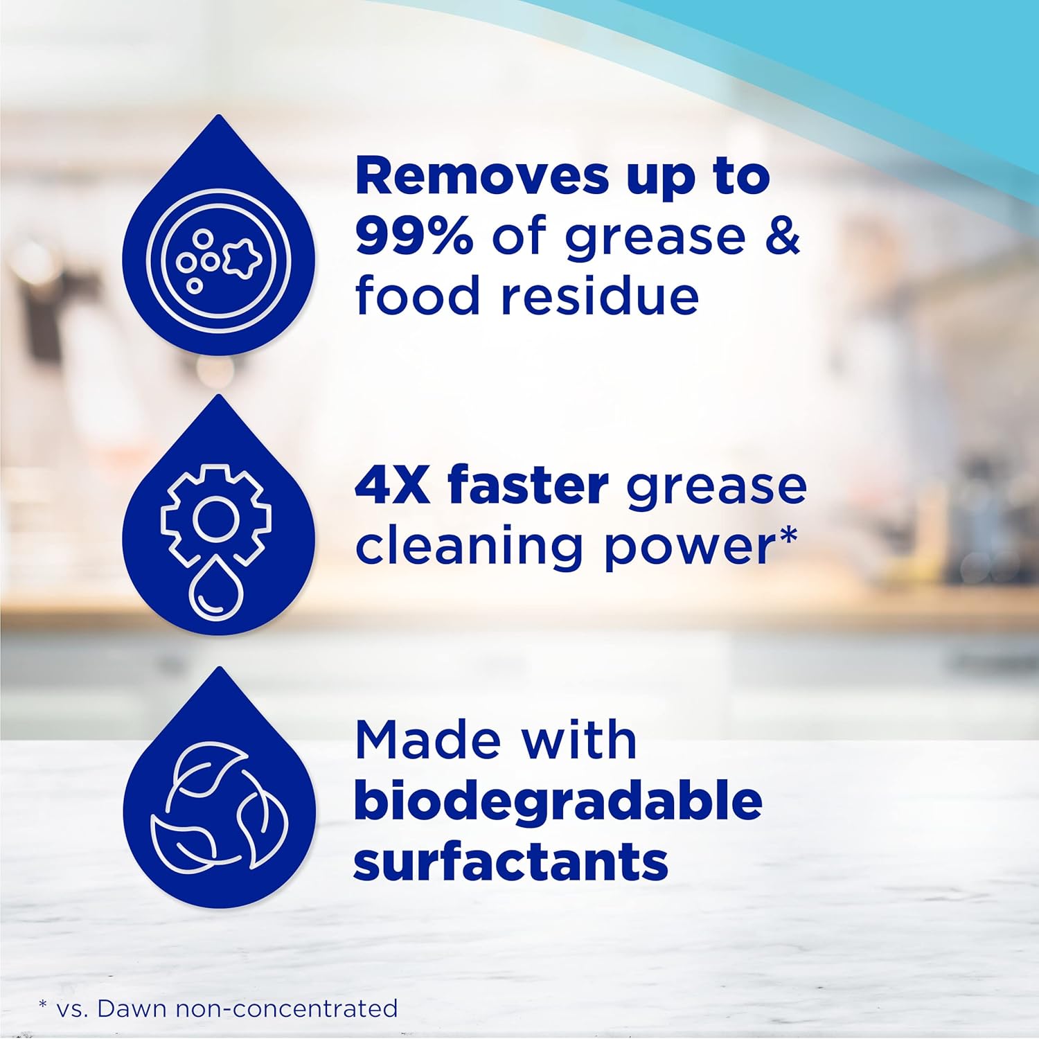 - 1. POWERFUL CLEANING: Contains 4 times grease fighting power (cleaning ingredients per drop vs Dawn non-concentrated), making it a powerful dish soap liquid and dish detergent liquid