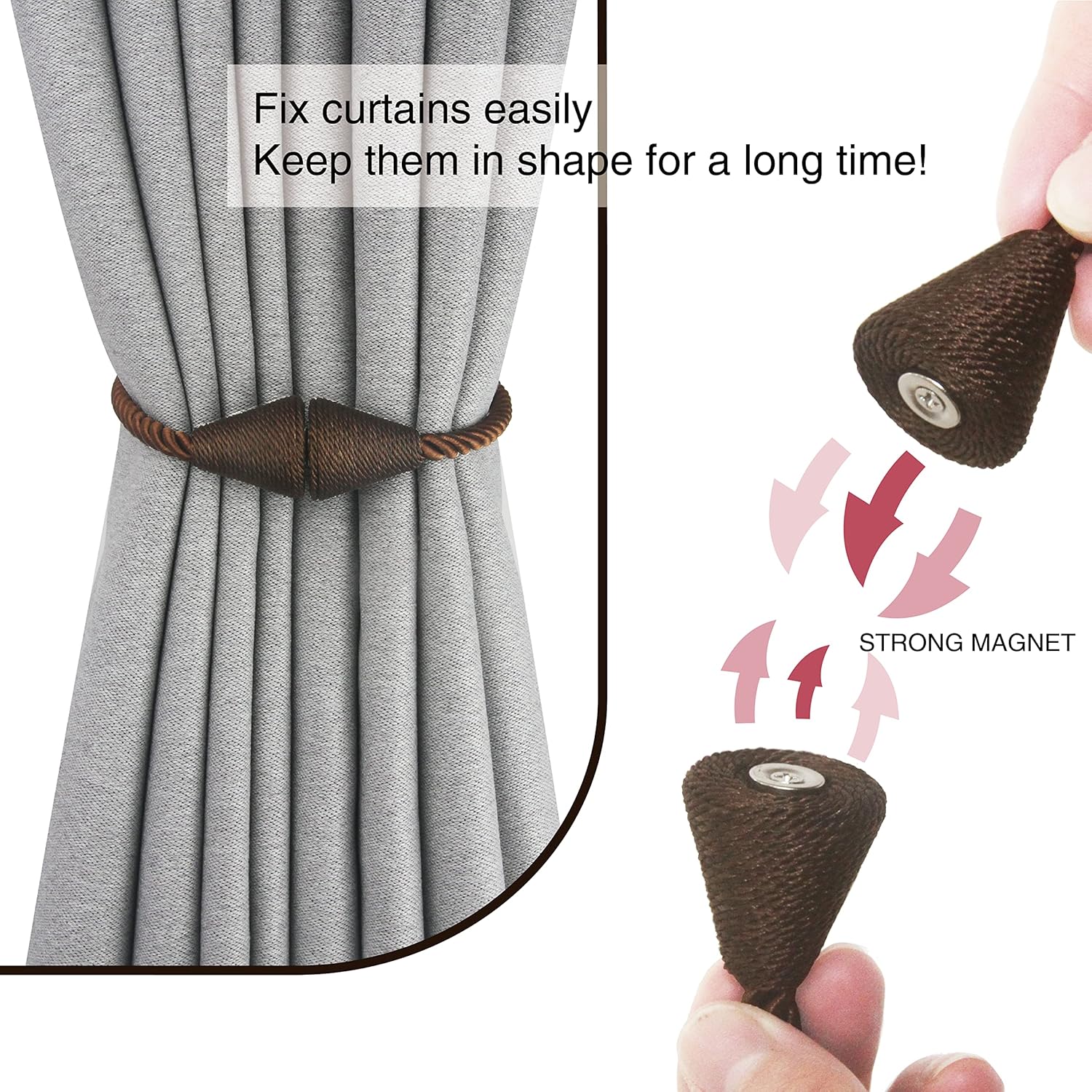 - Easy To Use- You can use different binding methods according to your preferences. The magnets are strong enough to keep holding the curtain. Conical shape curtain tiebacks adding a modern beauty to your windows.