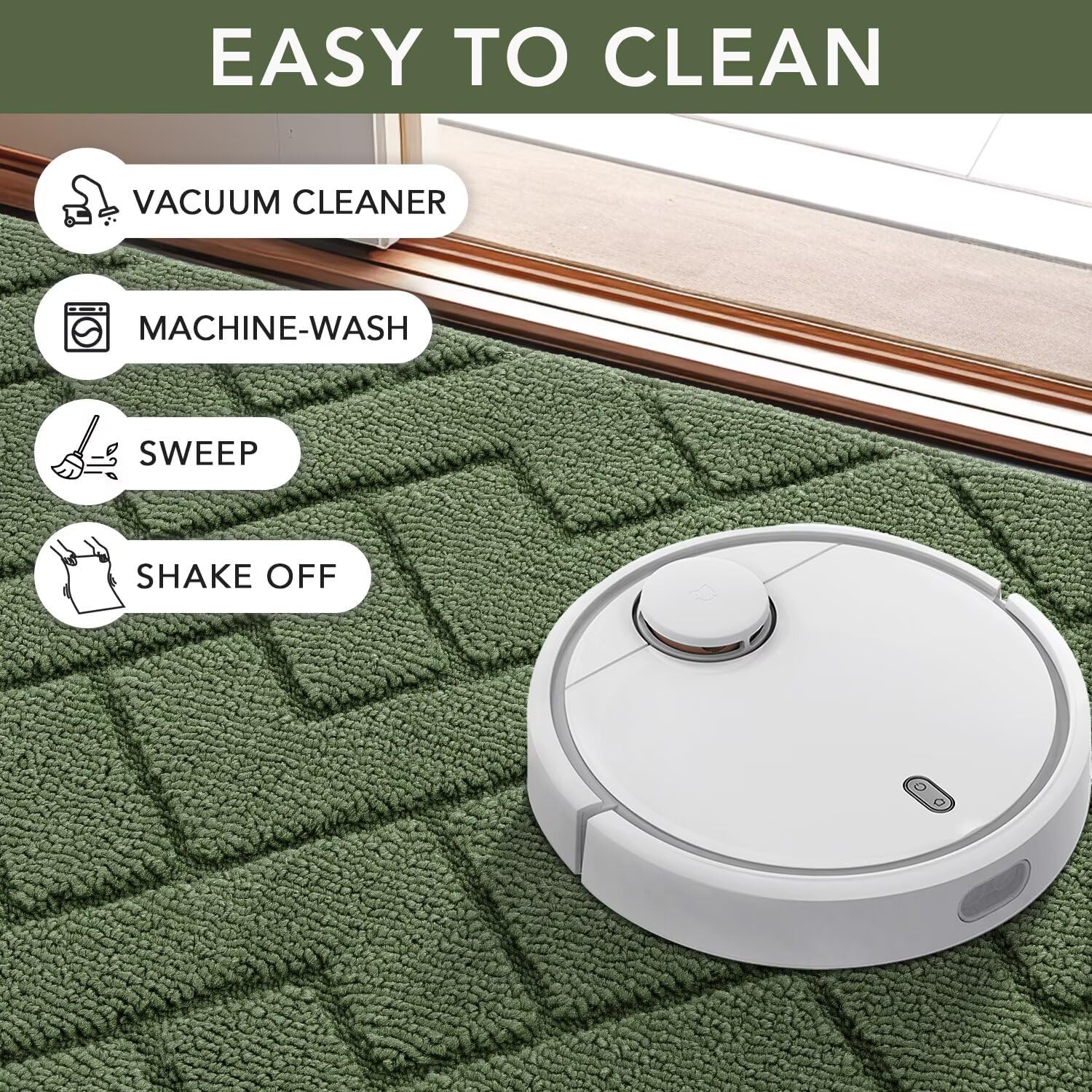 hicorfe Indoor Door Mat,Non Slip Door Mats,32"x48" Front Back Door Mat Rubber Backing,Absorbent Resist Dirt Entrance Inside Floor Mats for Entryway Washable Low-Profile(Green)