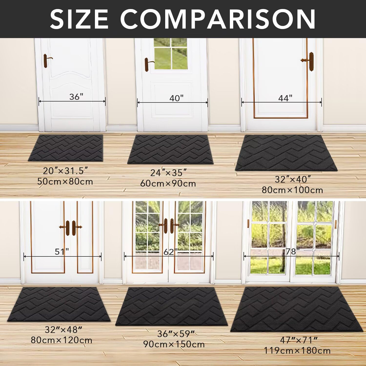 hicorfe Indoor Doormat,Front Back Door Mat Rubber Backing Non Slip Door Mats 47"x71" Absorbent Resist Dirt Entrance Doormat Inside Floor Mats for Entryway Washable Low-Profile (Charcoal)