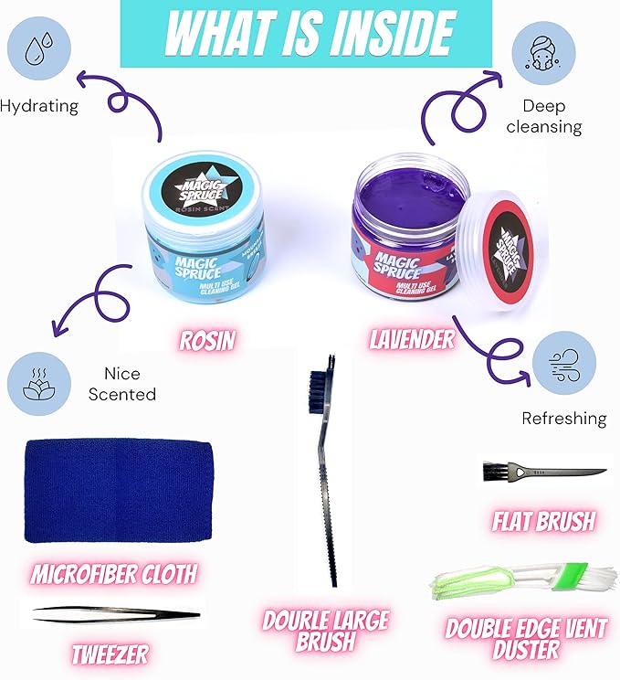 - CAR VALETING KIT FOR ALL DEAD CORNERS - The 5 car and keyboard cleaning accessories included can reach so many nooks and crannies with Magic Spruce car interior detailing kit, use the car valeting cleaning products during your inside car cleaning session, all in one tidy car kit box for easy storage. Two of the car / computer cleaning tools are double edged. Both dust cleaning gel & tools can be used for the most satisfying clean up.