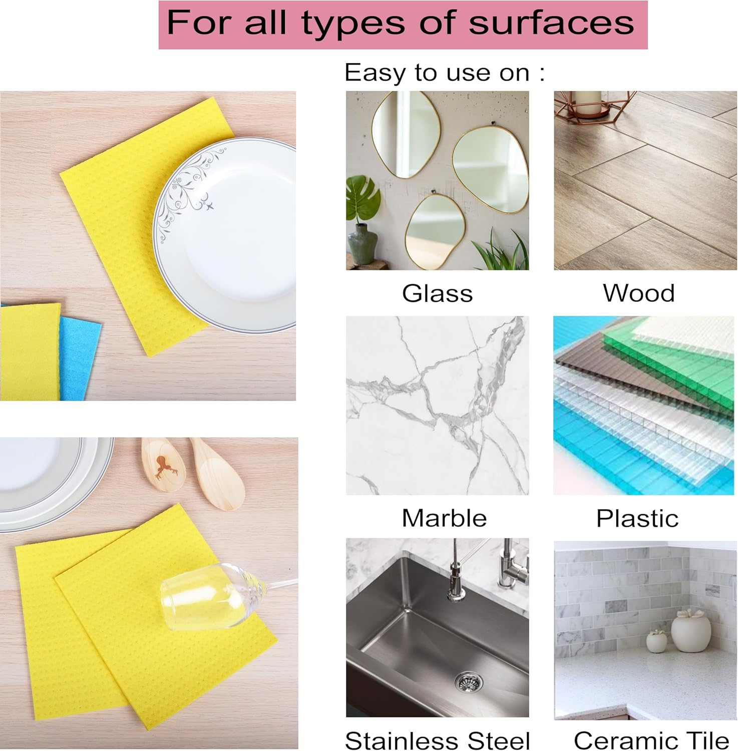 - NO ODOR - The cellulose sponge material is naturally odor-resistant, ensuring that your dishcloths stay fresh and clean, even after repeated use. Say goodbye to smelling dishcloths and enjoy the fresh, clean scent of your kitchen.