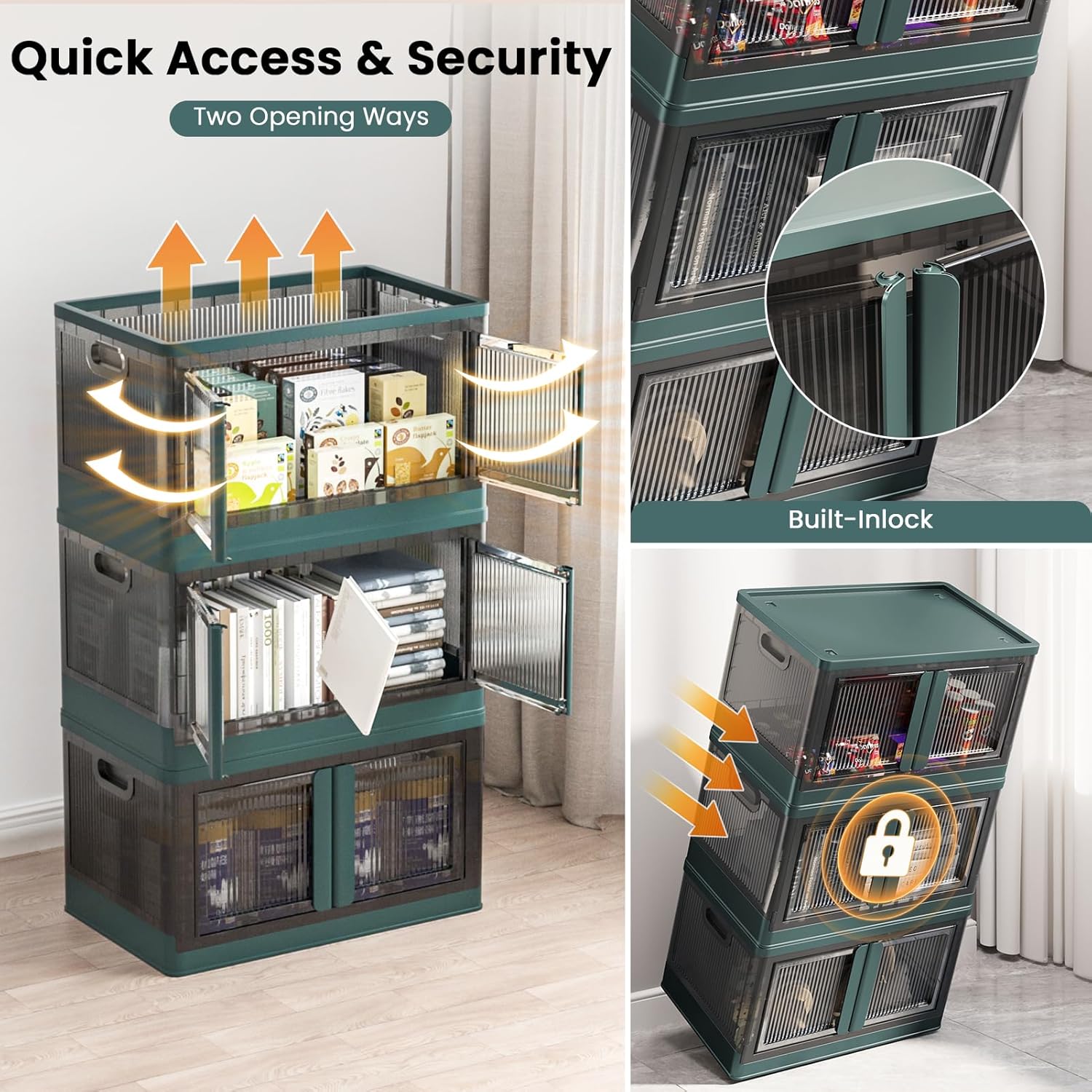- Quick Access & Security: Clear doors let you see contents instantly, open-front design allows effortless item retrieval. Additionally, the built-in lock clasp prevents accidental opening during transport