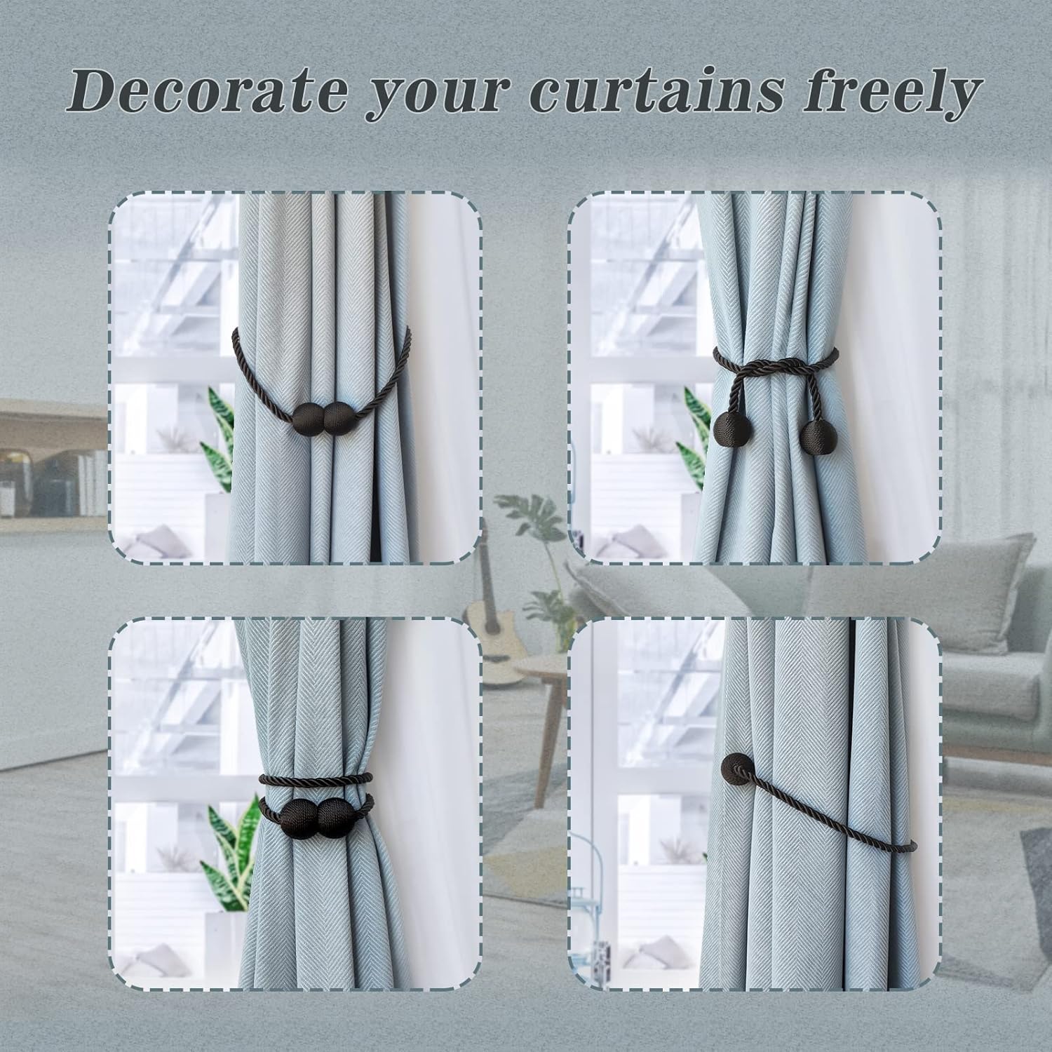 - 🌛[Upgrade Powerful Magnetic] Our magnetic curtain tiebacks magnets use high-end new imported nickel-plated magnets, more magnetic than ordinary magnetic, the upgraded magnets are also less prone to rusting, with strong corrosion resistance and durability. The rope of curtain tie adopts thickened solid polyester yarn, which is not only durable, but also not easy to wear or pilling.