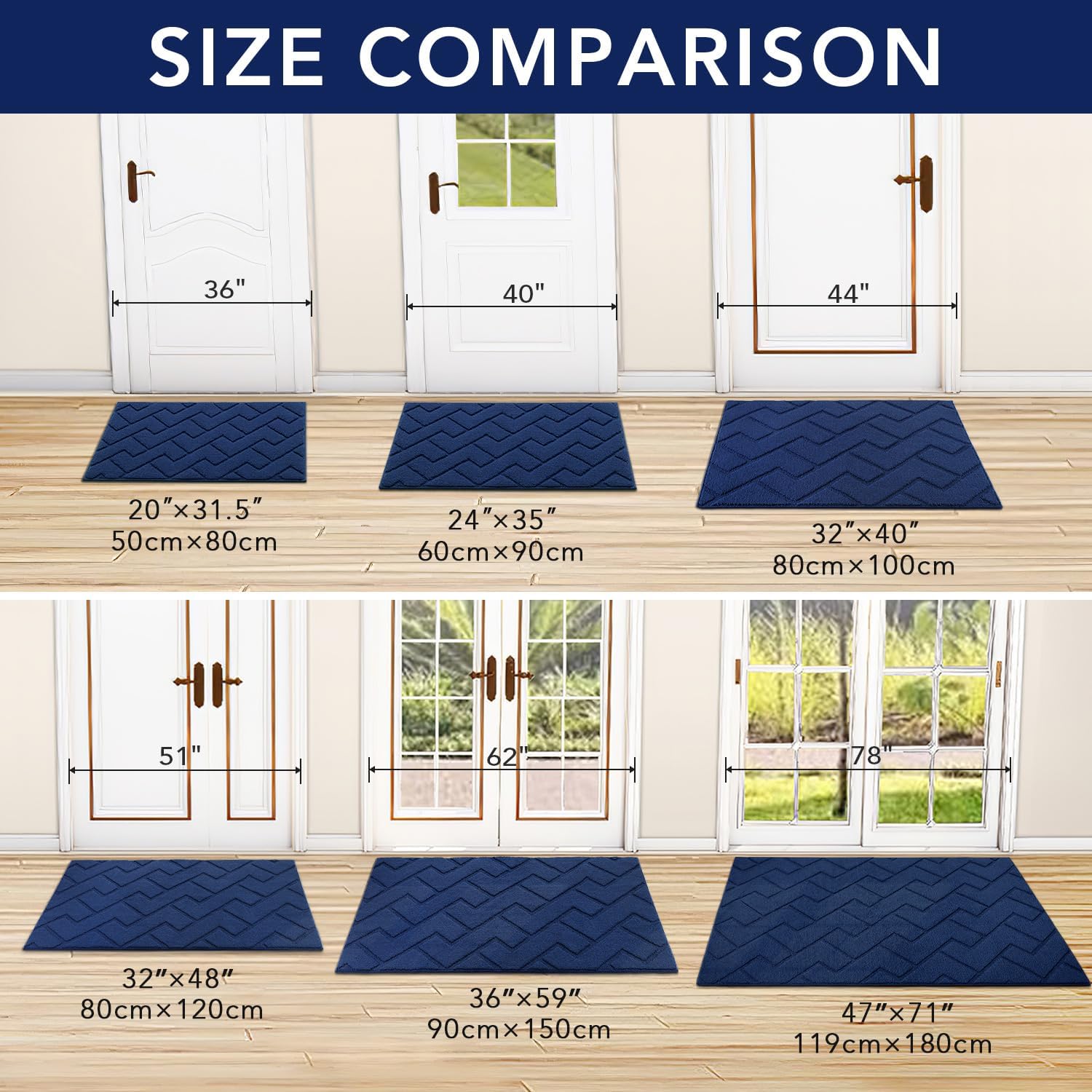 hicorfe Indoor Door Mat,Non Slip Door Mats,32"x48" Front Back Door Mat Rubber Backing,Absorbent Resist Dirt Entrance Inside Floor Mats for Entryway Washable Low-Profile(Navy Blue)