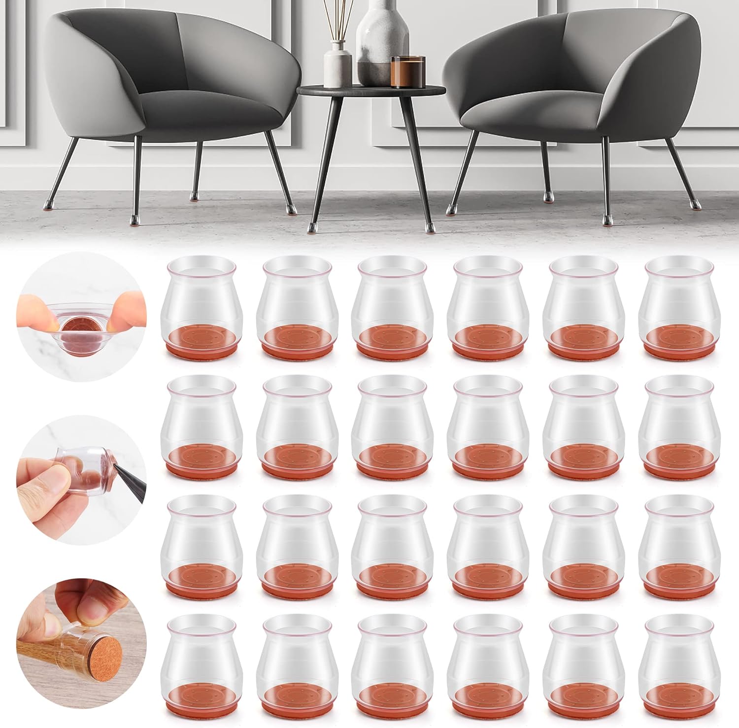 24PCS Upgraded Silicone Chair Leg Floor Protectors for Hardwood Floors, Furniture Sliders for Chair Legs, Felt Bottom Furniture Pads, Anti-Slip Round&Square Cap Covers to Scratch and Reduce Noise