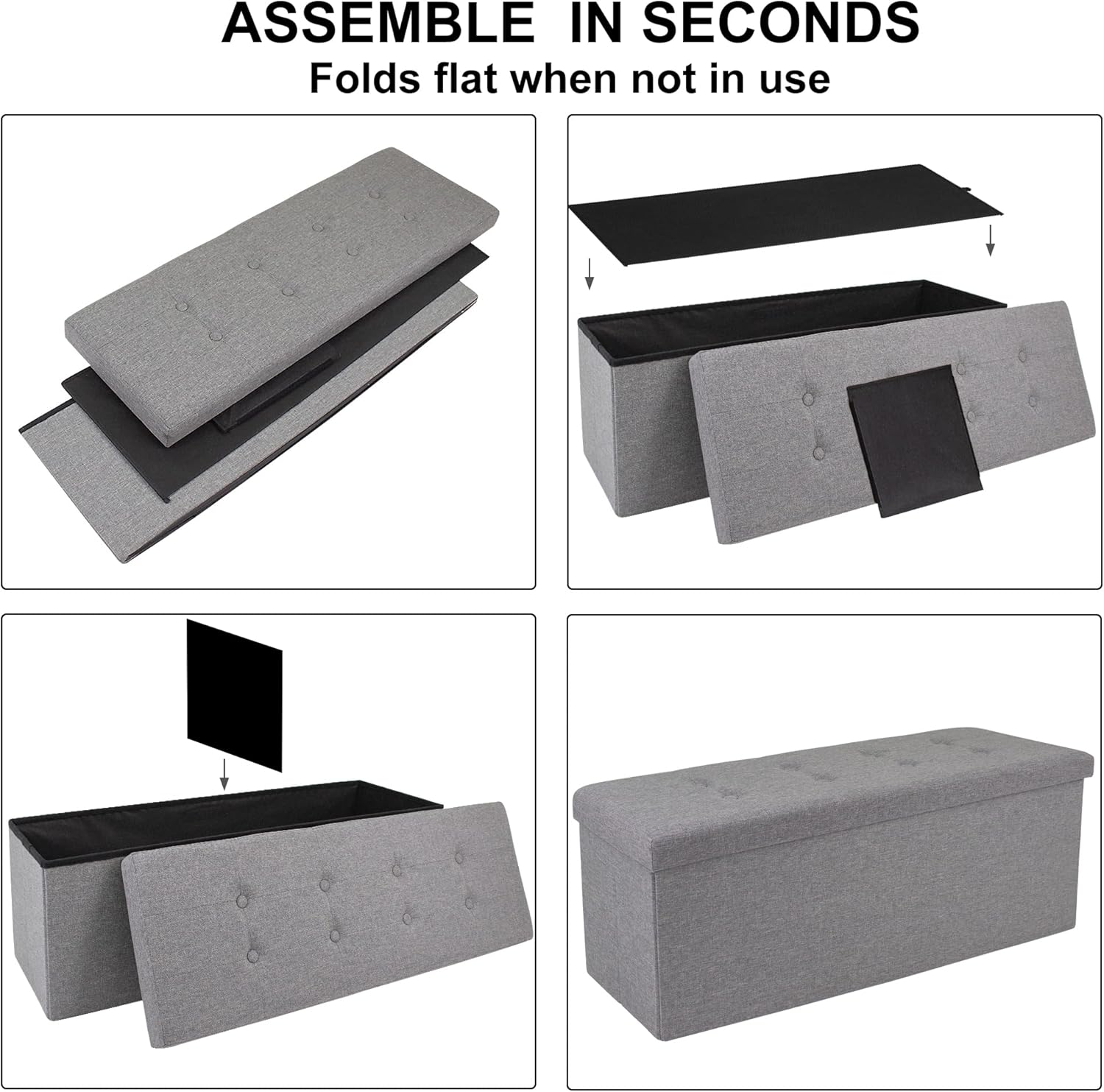 - Quick Assembly & Easy Foldaway: This storage ottoman has a foldable design for quick setup and compact storage, easily fold and store it under the bed when not in use
