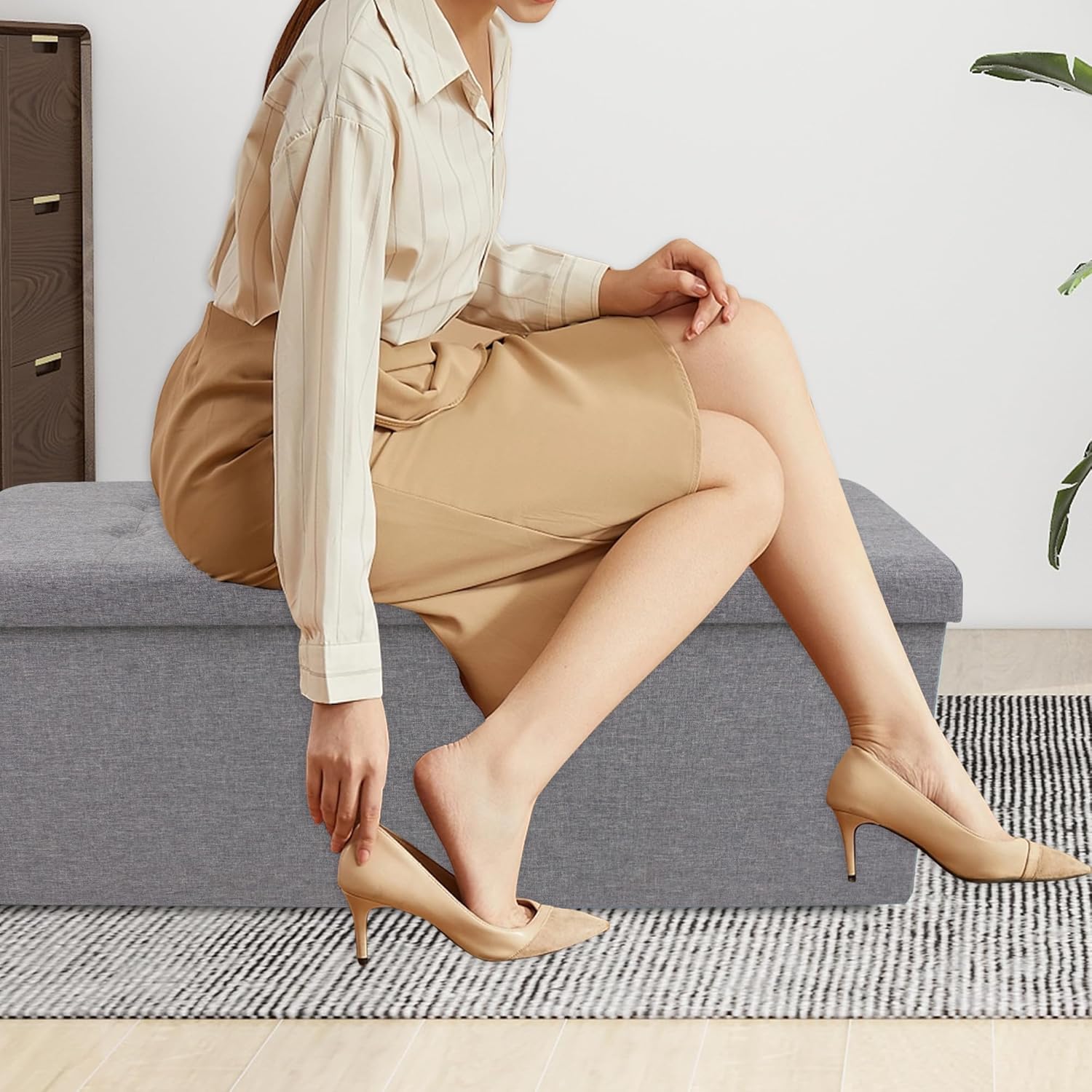- Versatile Storage Bench: Use this 43-inch storage ottoman as a storage box, footstool, or coffee table. It fits seamlessly into the living room, bedroom, entryway to meet various needs