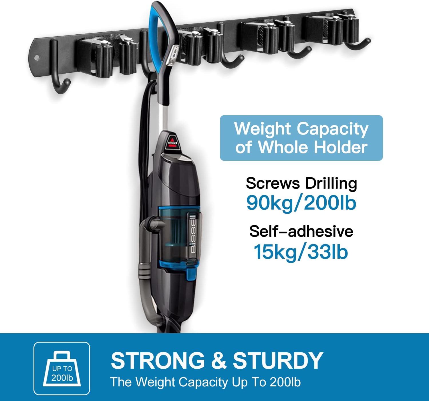 - 🧹 HEAVY DUTY: Mop holder grip everything tightly and securely without slip. It can hold up to about 9 tools in total. Keep your place cleaned up and keep things organized.
