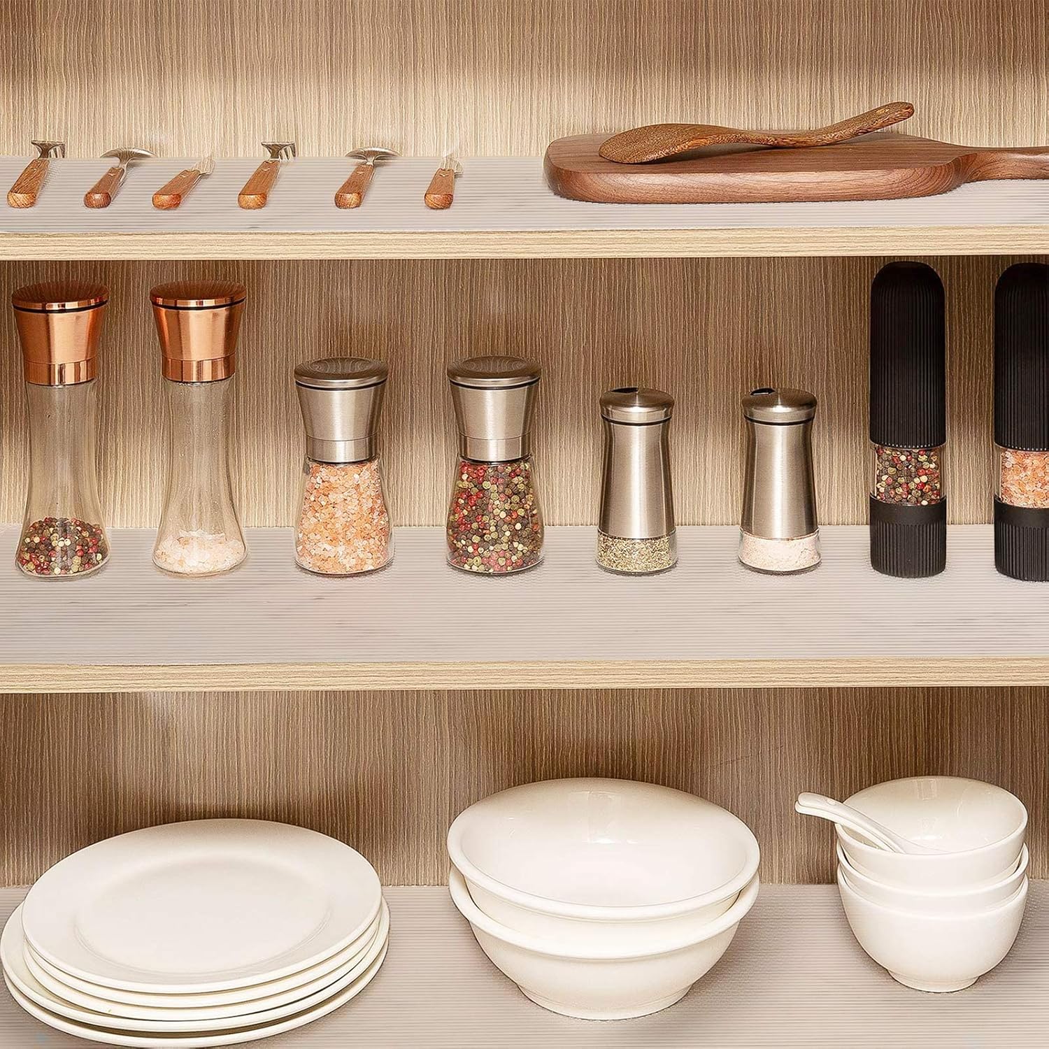 - π EASY INSTALLATION AND NON ADHESIVE- Comes in the most popular pre-cut sizes for easy installation. For unique sizes and shapes, you can simply trim the pantry shelf liner with a household scissor. Just place the shelf liner non adhesive down in your drawer or cabinet and trim off any excess material. Plus, the liners are non-adhesive and easily removable.