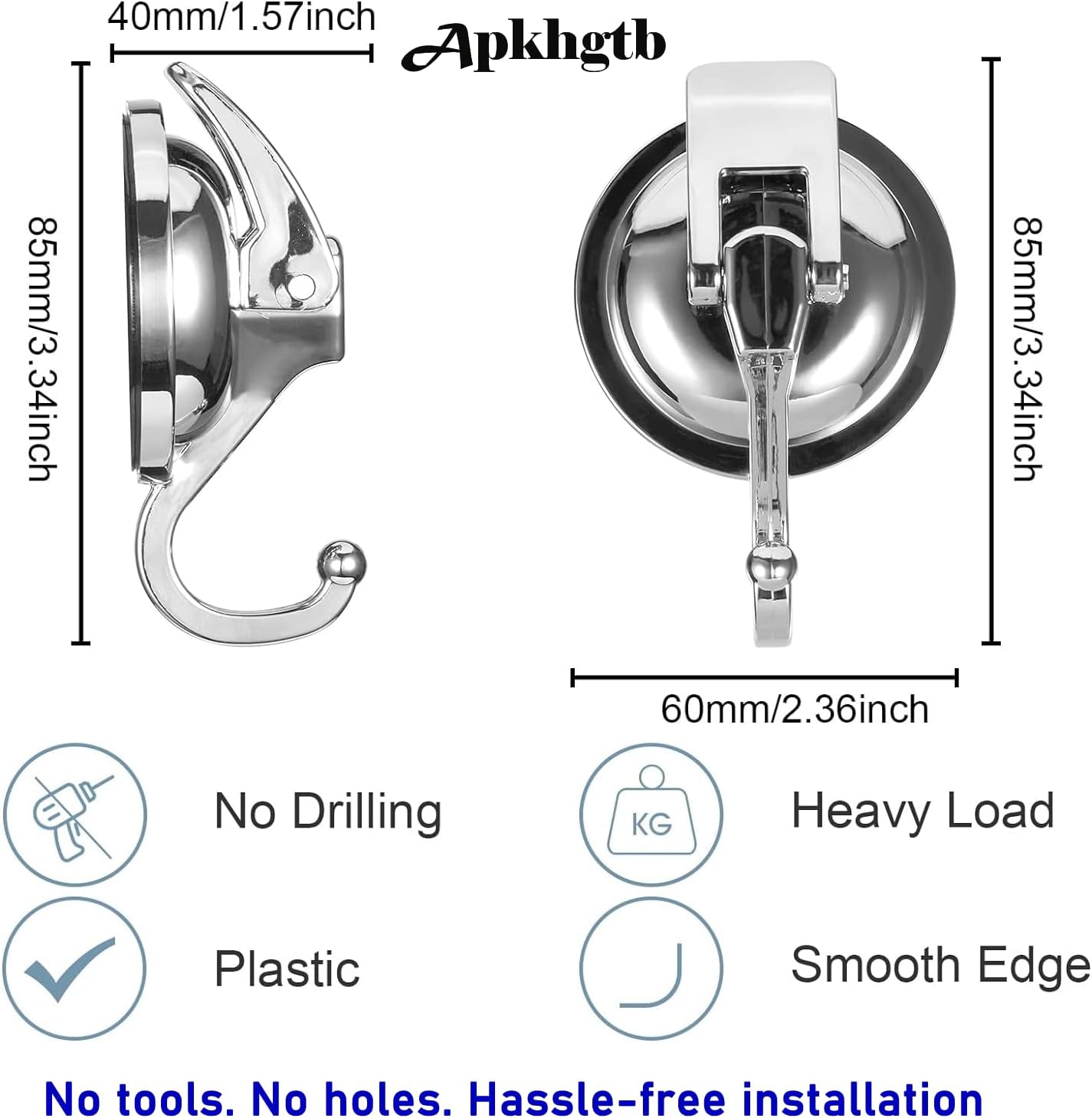 Heavy Duty Vacuum Suction Cup Hooks, Silver Plated Polished Super Suction for Kitchen Bathroom, 2 Pack