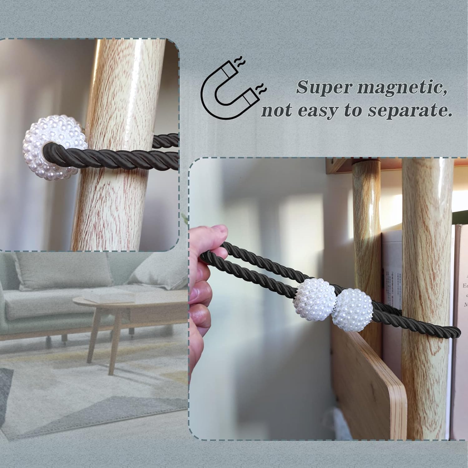 - [Upgrade Powerful Magnetic] Our magnetic curtain tiebacks magnets use high-end new imported nickel-plated magnets, with strong corrosion resistance and durability, more magnetic than ordinary magnetic curtain tiebacks, and do not rust and not lose color. The rope of curtain tie adopts upgrade thickened solid polyester yarn, which is not only durable, but also not easy to wear or pilling.