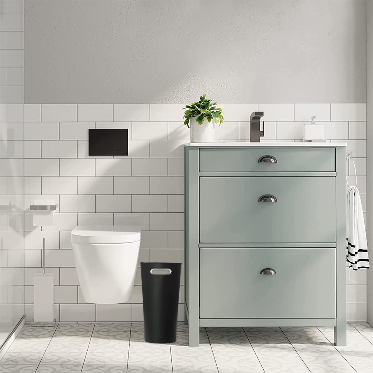HZSOOCH 3 Pack Slim Waste Basket 3.2 Gallon 12L Plastic Small Trash Can, Office Trash Can, Slim Garbage Container Bin, Small Wastebasket with Handles for Narrow Spaces Bathroom, Kitchen (Black)