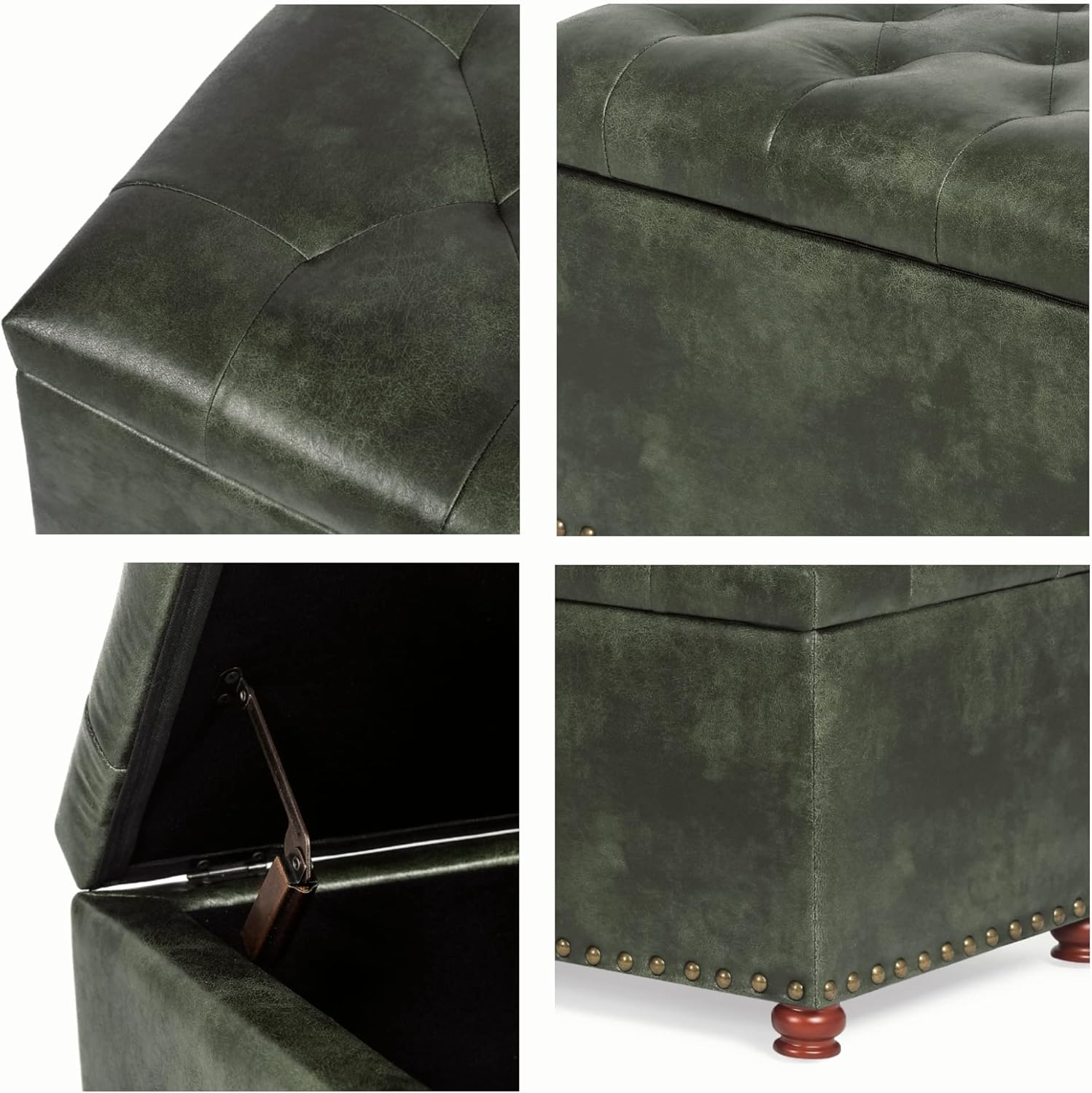 - 【VINTAGE STYLE】The sturdy reddish brown wooden feet, the unique rivet decoration and the tufted design on the top of the lid make the ottoman full of retro style and look elegant and luxurious. This is a piece of furniture with good taste.
