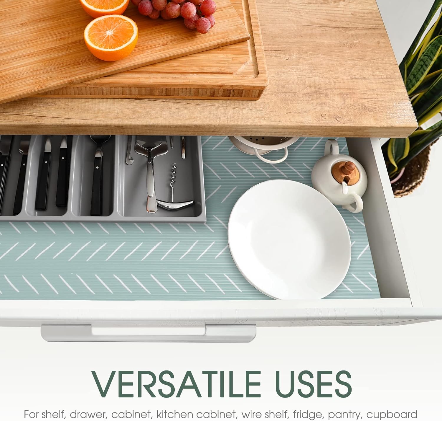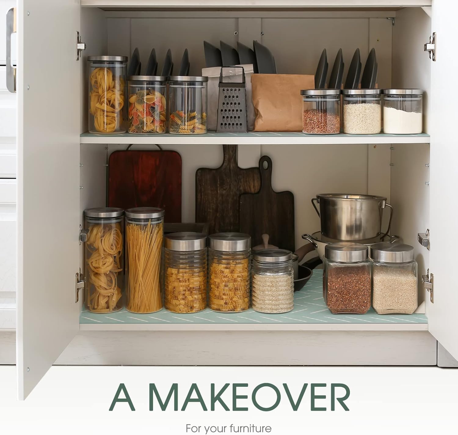 - Premium Cabinet Liner Made of Food-Grade EVA Material:This kitchen, drawer, cabinet, shelf, fridge and general storage shelf liner is made of BPA-free, odor-free, EVA material for your safety. The non-slip design sticker on the bottom of this drawer liners for kitchen allows your kitchen supplies to stay organized, in place and on the shelves, wire rack and pantry