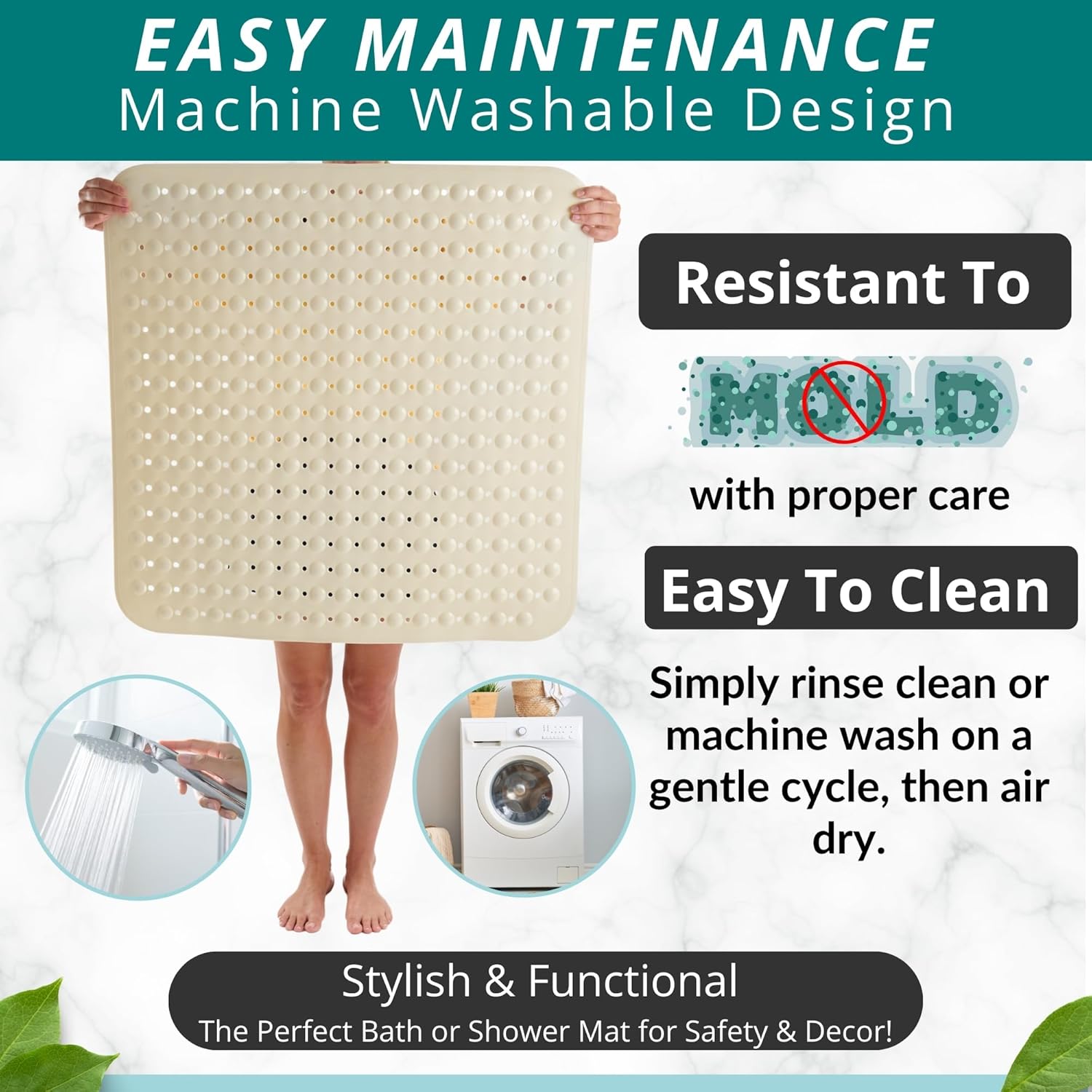 ENKOSI Extra Large Square Non Slip Shower Mat - 31 x 31-inch XL Bathroom Shower Mat - Square Shower Matts for Shower Stall Floors | Secure Suction Cups and Drain Holes (31x31 Pearl White)