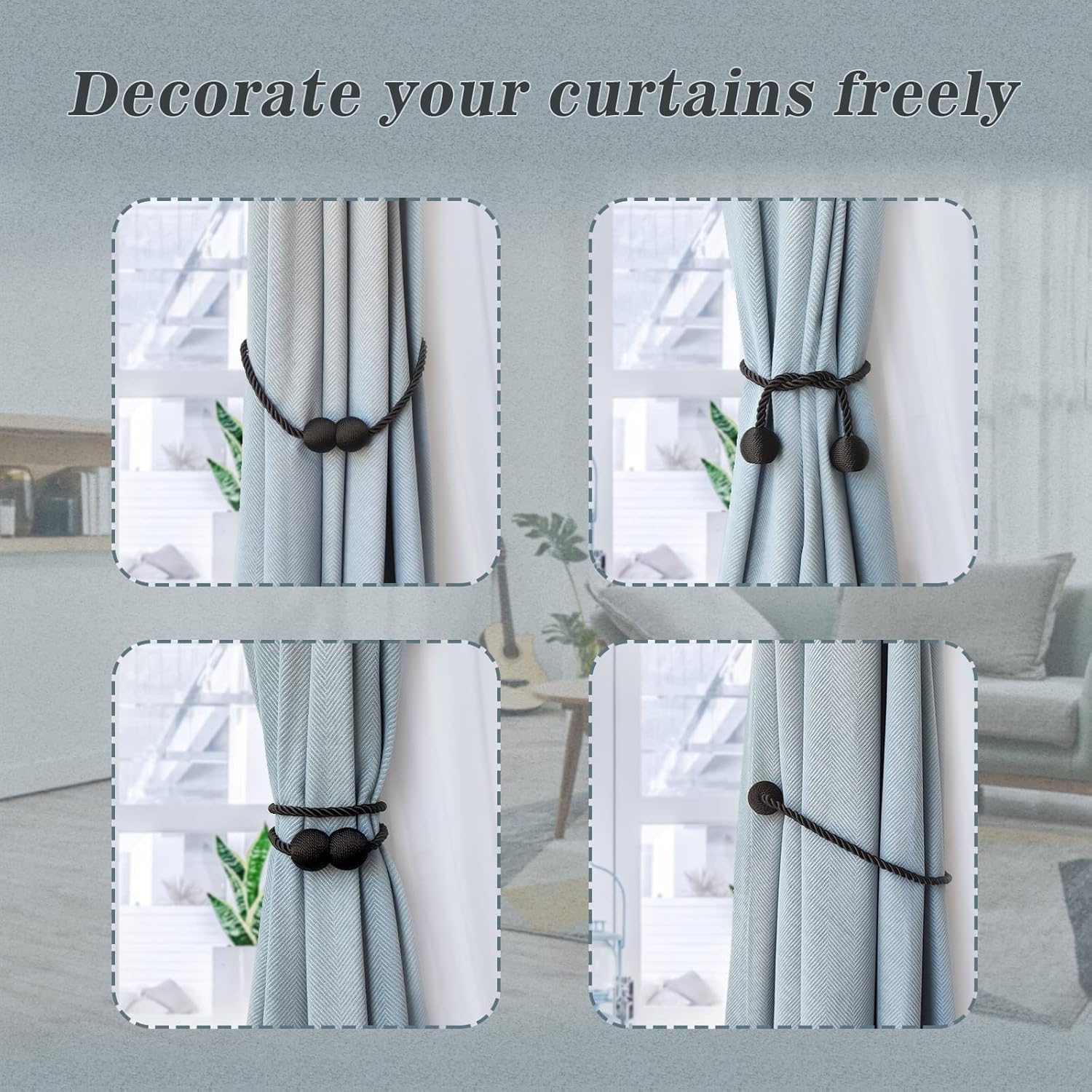 - [Upgrade Powerful Magnetic] Our magnetic curtain tiebacks magnets use high-end new imported nickel-plated magnets, with strong corrosion resistance and durability, more magnetic than ordinary magnetic curtain tiebacks, and do not rust and not lose color. The rope of curtain tie adopts upgrade thickened solid polyester yarn, which is not only durable, but also not easy to wear or pilling.