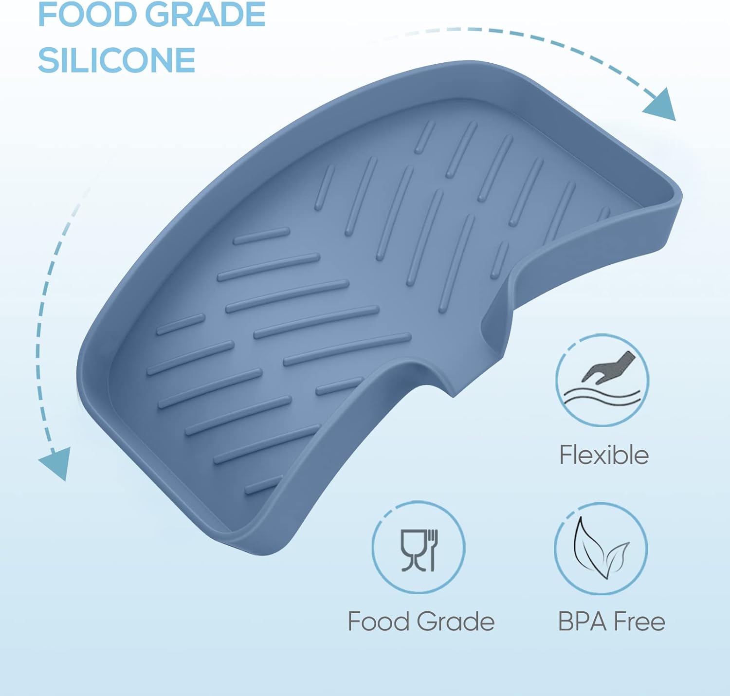 - Superior Quality High Purity Silicone: Our kitchen sink tray is made of superior quality high purity silicone which is BPA free and flexible, it won't crack, peel or become brittle.This silicone sponge holder is heat resistant for use with hot tools and it is easy to clean, you can put this sink tray into the dishwasher.